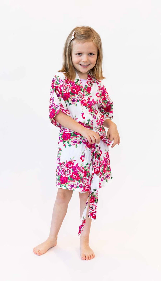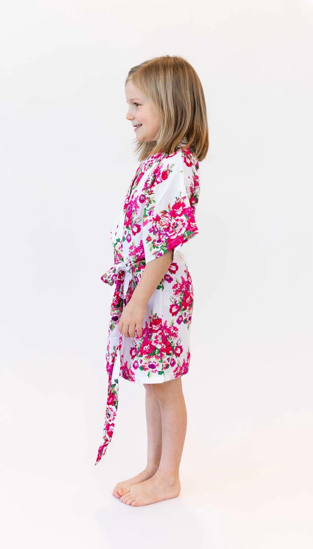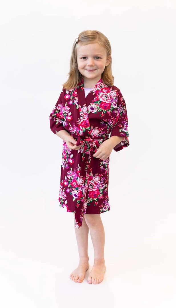Designed specifically for junior bridesmaids and flower girls, these cute white, pink, & bordeaux floral robes are perfect for getting wedding-ready! Each of our junior bridesmaid robes is made from soft rayon cotton and features a fun floral design. Robes are the ideal way to help your younger bridesmaids get ready on your big day — they’ll feel pretty and comfortable in these gorgeous robes.