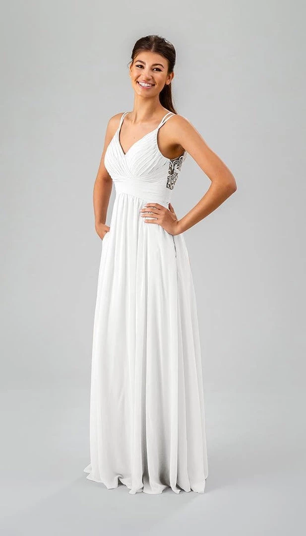 No one does embroidery like Kennedy Blue! Classic bridesmaid dress in the front, modern flair in the back. Feel refined as you help your loved ones say I do!