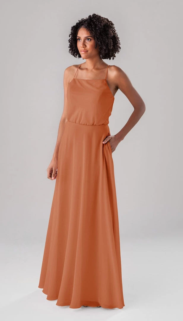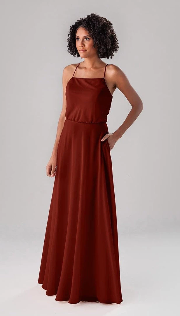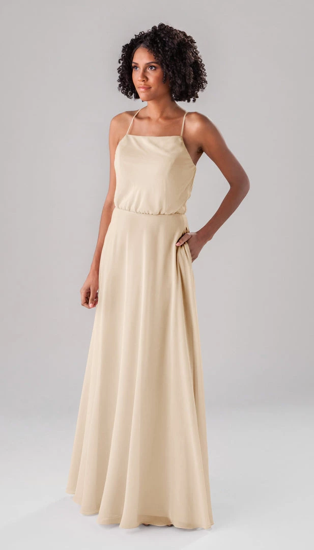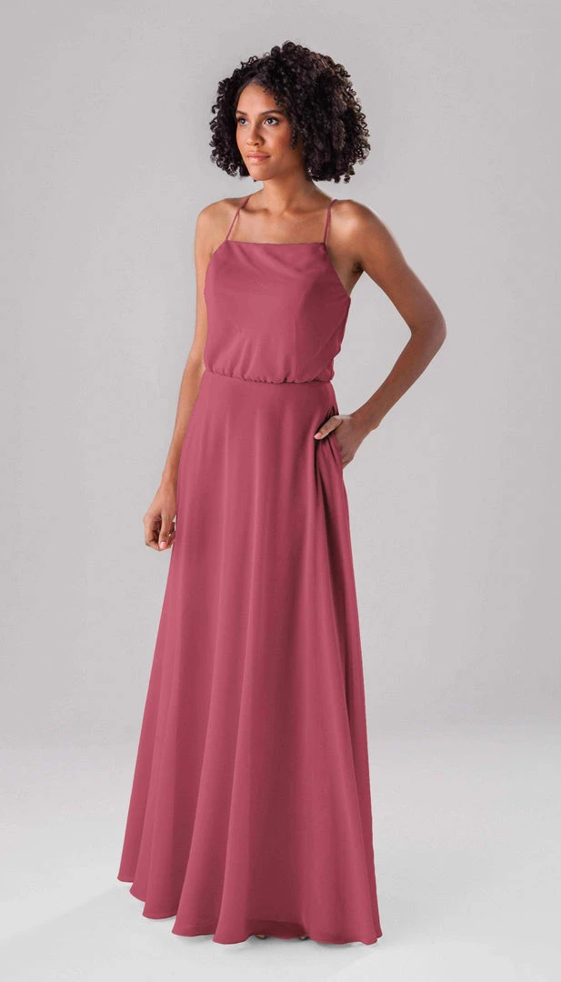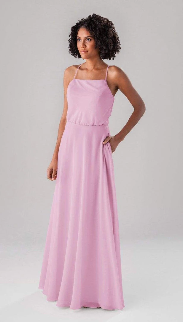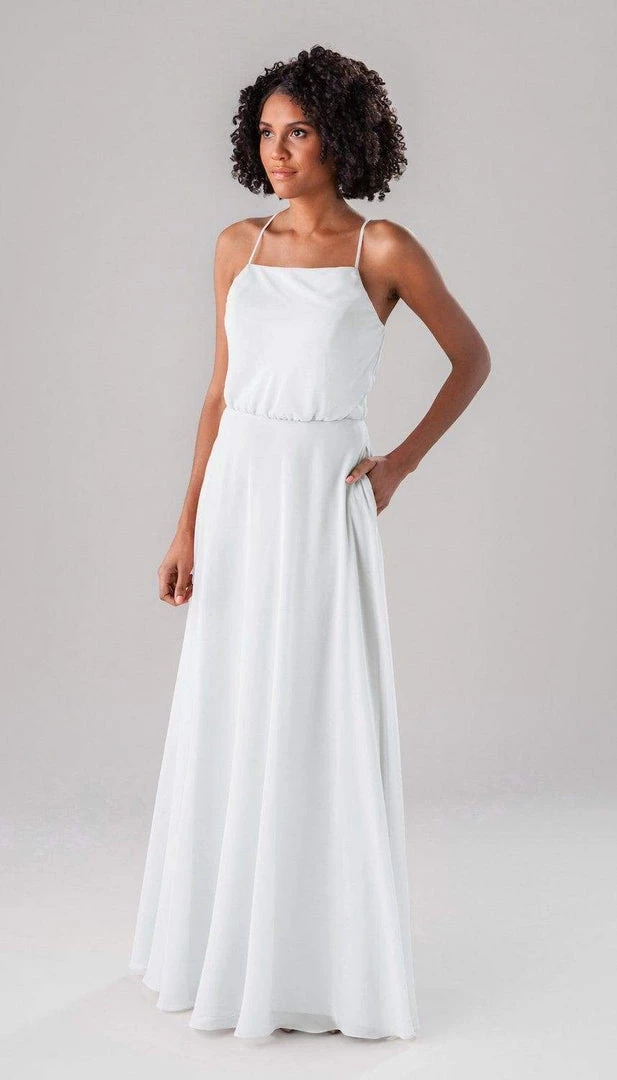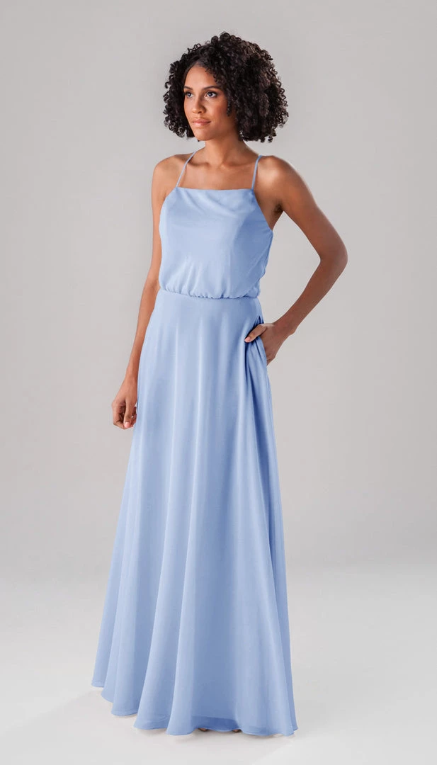 Fatima is an elegant, modest bridesmaid dress that is as versatile as it is beautiful! This classic dress features a blouse-like top, a straight-across neckline, and straps that form a v in the back! This dress is perfect for both indoor and outdoor weddings!