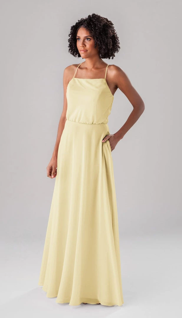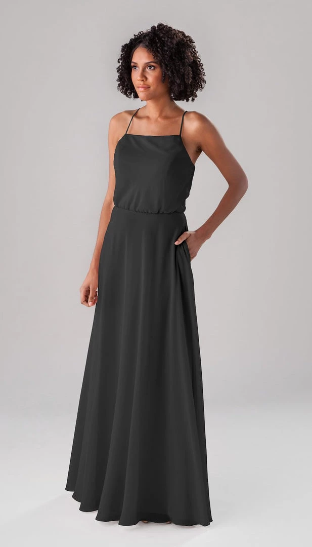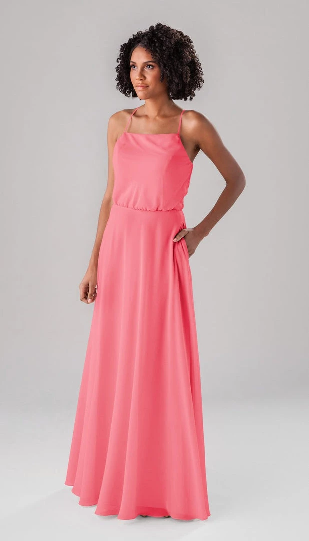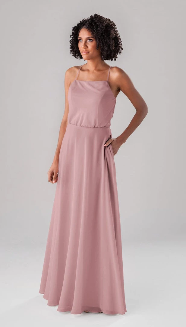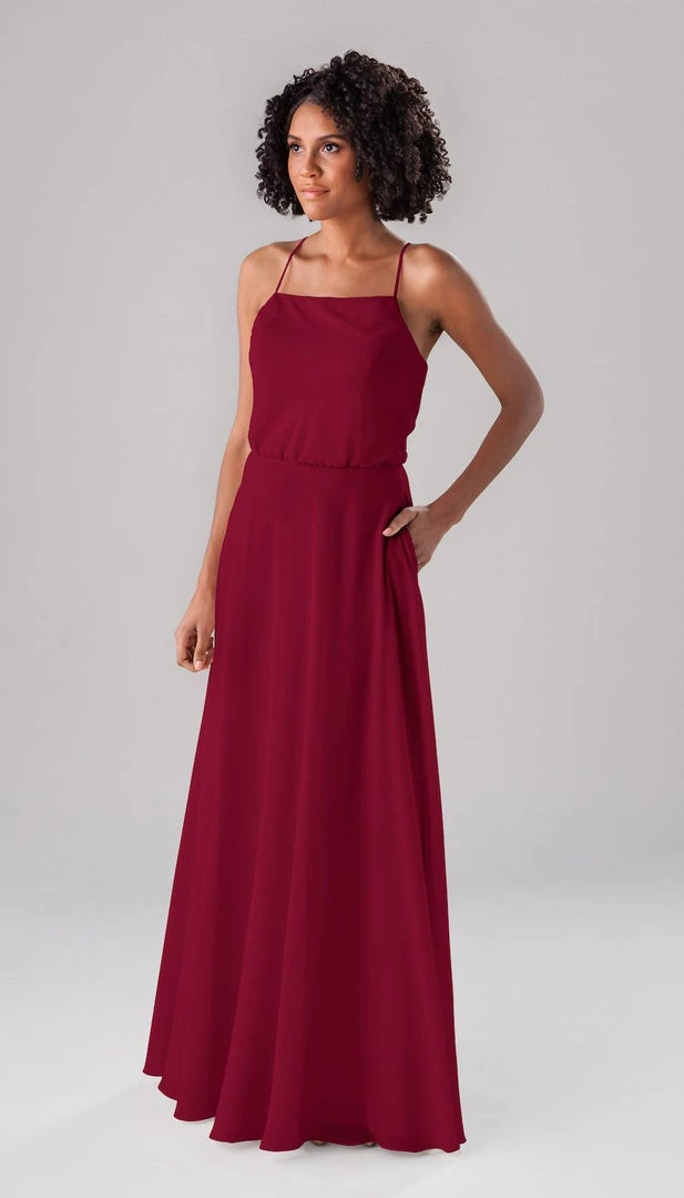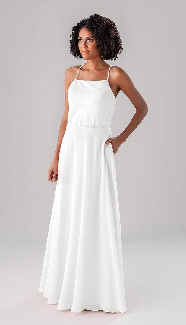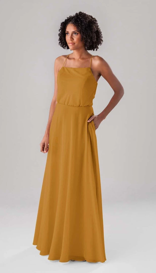 Fatima is an elegant, modest bridesmaid dress that is as versatile as it is beautiful! This classic dress features a blouse-like top, a straight-across neckline, and straps that form a v in the back! This dress is perfect for both indoor and outdoor weddings!