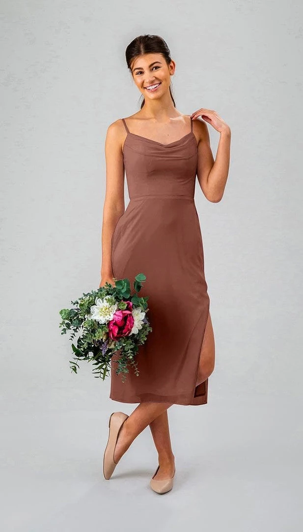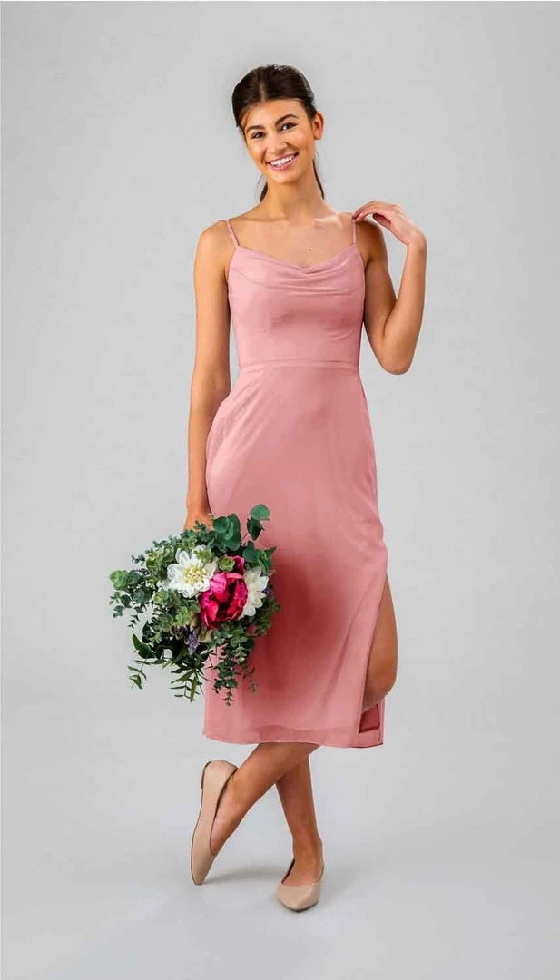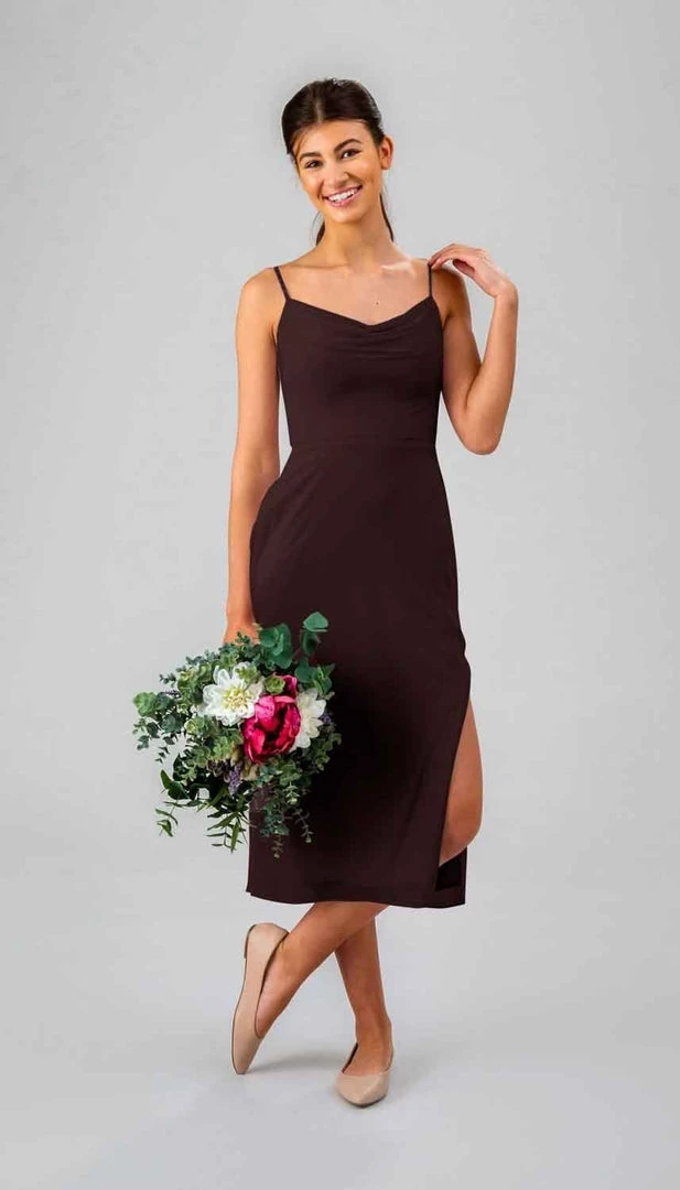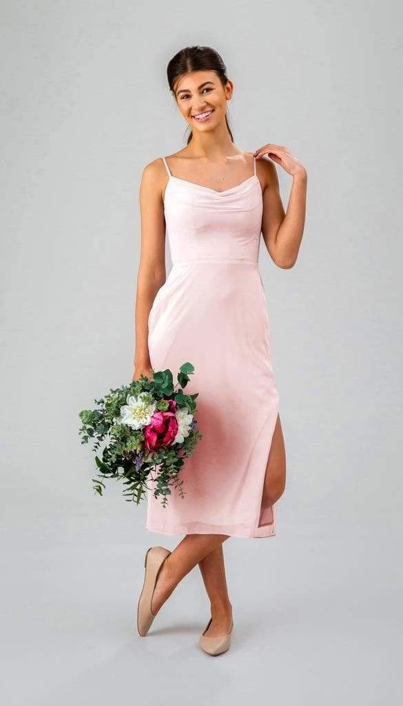 Have we told you how much we LOVE a cowl neckline? They’re flattering and fashionable! This flirty, fitted, midi bridesmaid dress is sure to dazzle at any event!