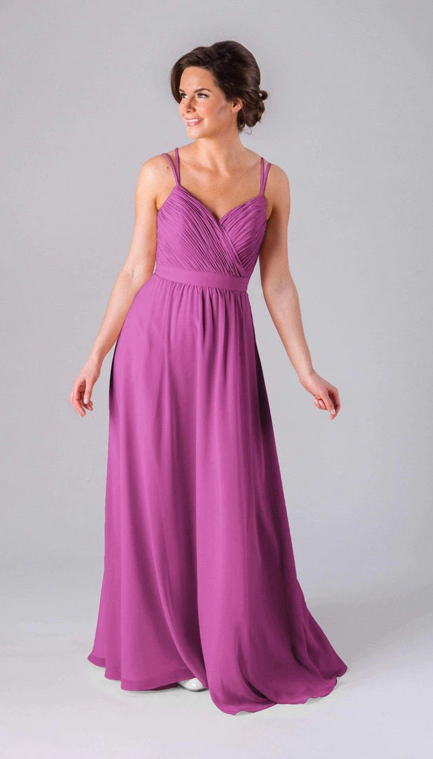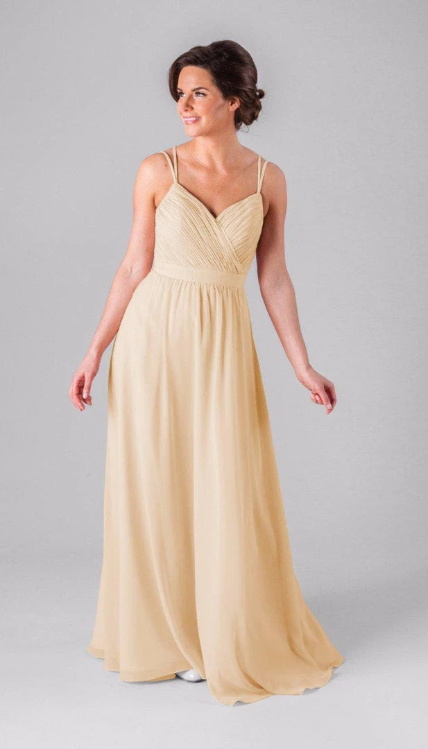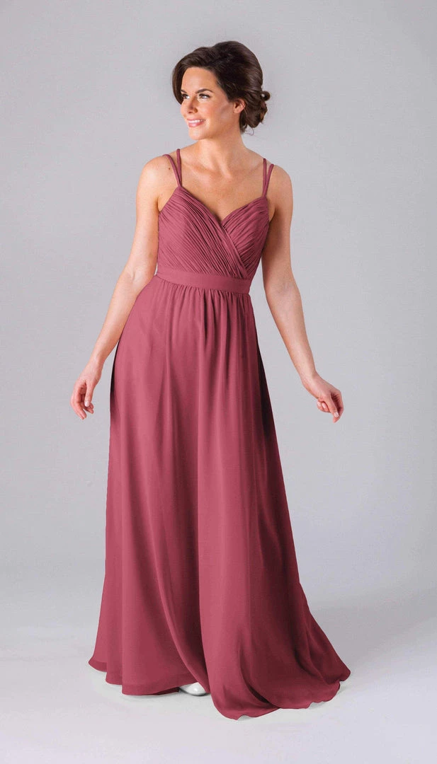 Mackenzie is made from a flat chiffon fabric which is comfortable to wear and similar in quality to silk, but much easier to clean and care for. This dress can be dry cleaned, but can also be washed regularly at home on a delicate cycle. Best of all, the exceptional quality of the flat chiffon means Mackenzie will hold up over multiple washes so you can make the most of your dress.