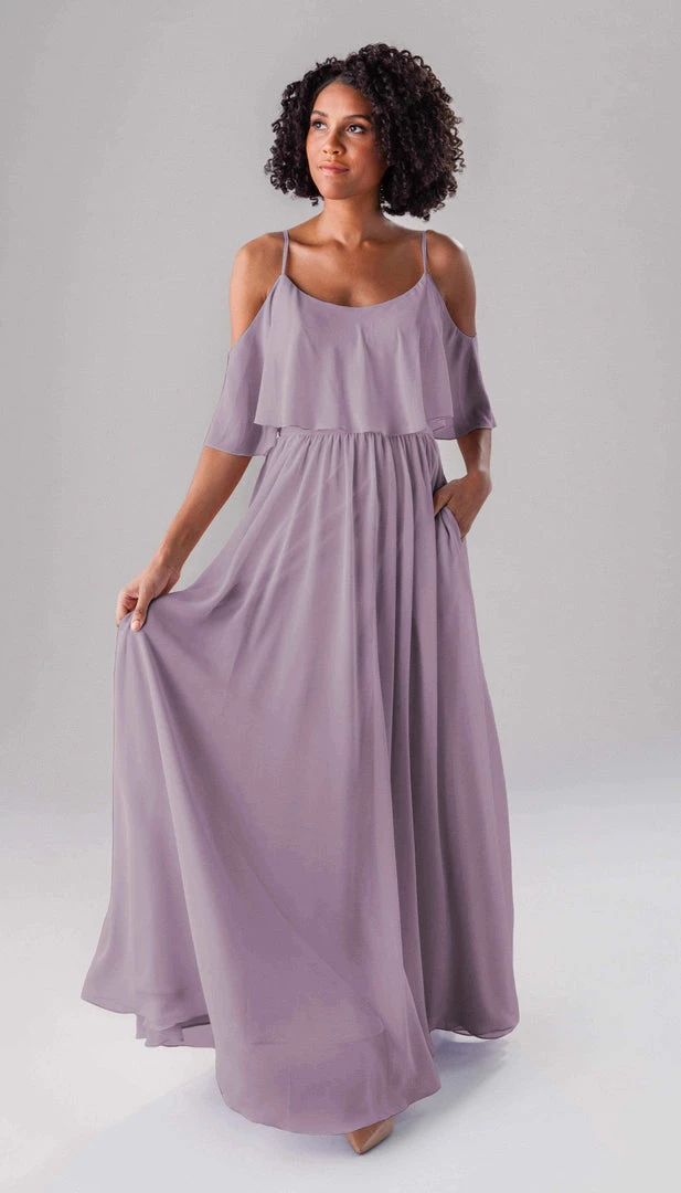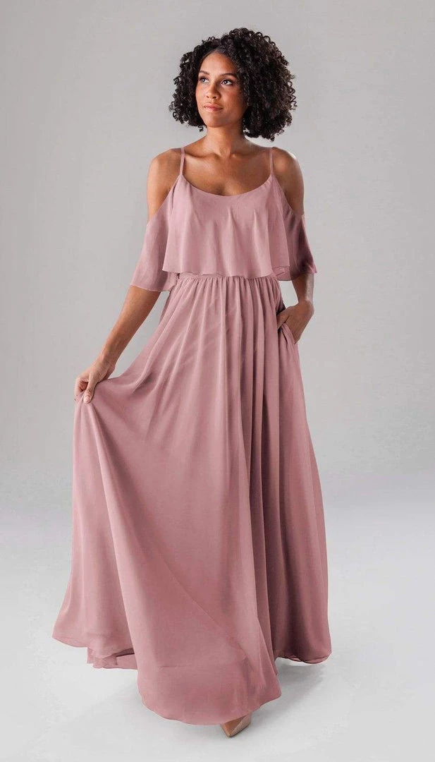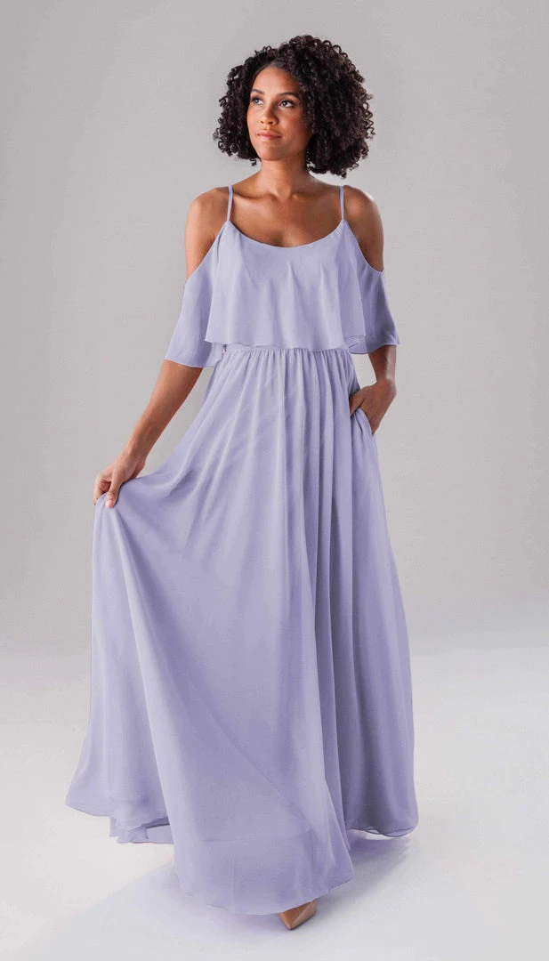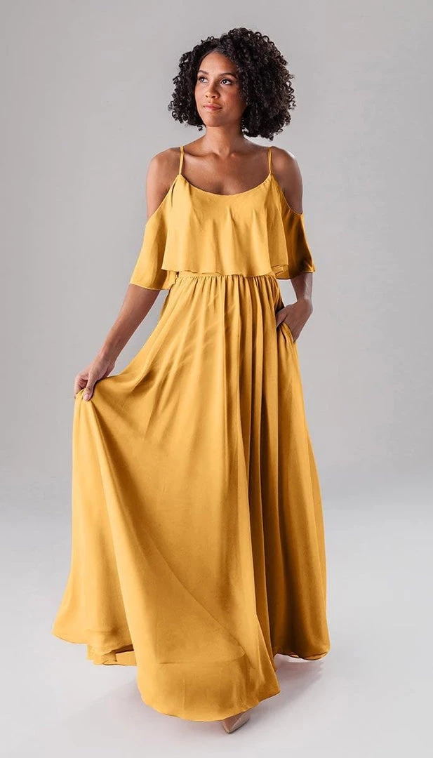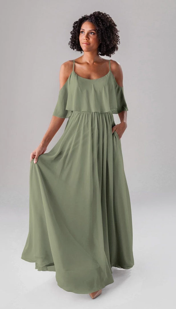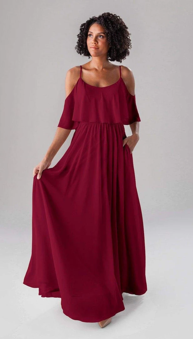 Nora is the perfect off-the-shoulder dress for the dreamy bridesmaid! This whimsical dress features a ruffled top, spaghetti straps, and an off the shoulder design, making this dress as comfortable as it is beautiful on everyone!