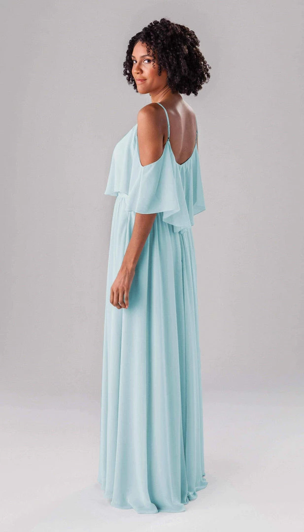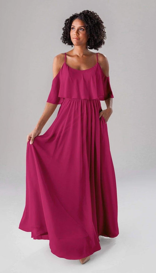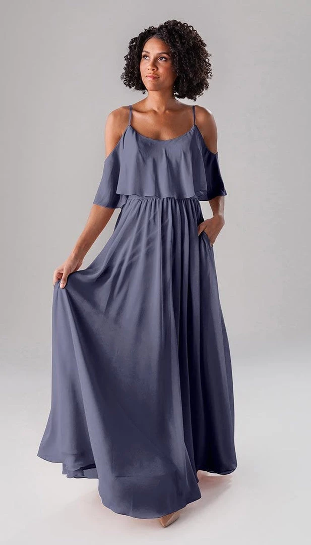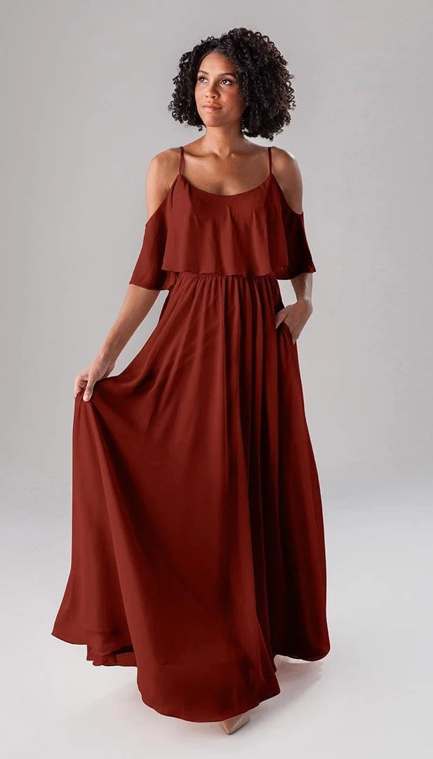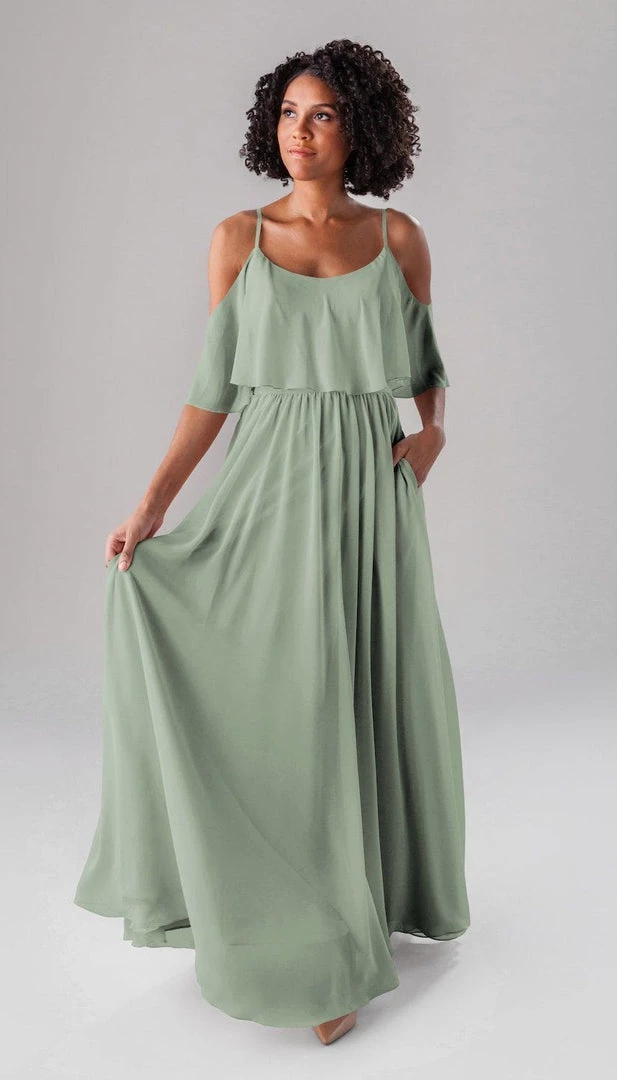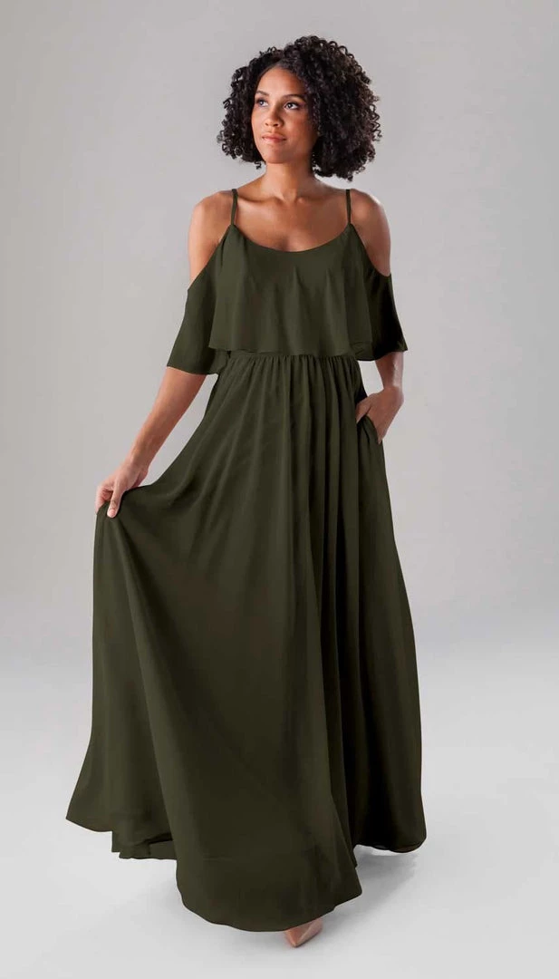 Nora is the perfect off-the-shoulder dress for the dreamy bridesmaid! This whimsical dress features a ruffled top, spaghetti straps, and an off the shoulder design, making this dress as comfortable as it is beautiful on everyone!