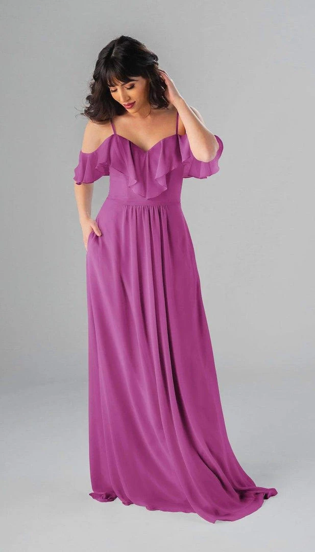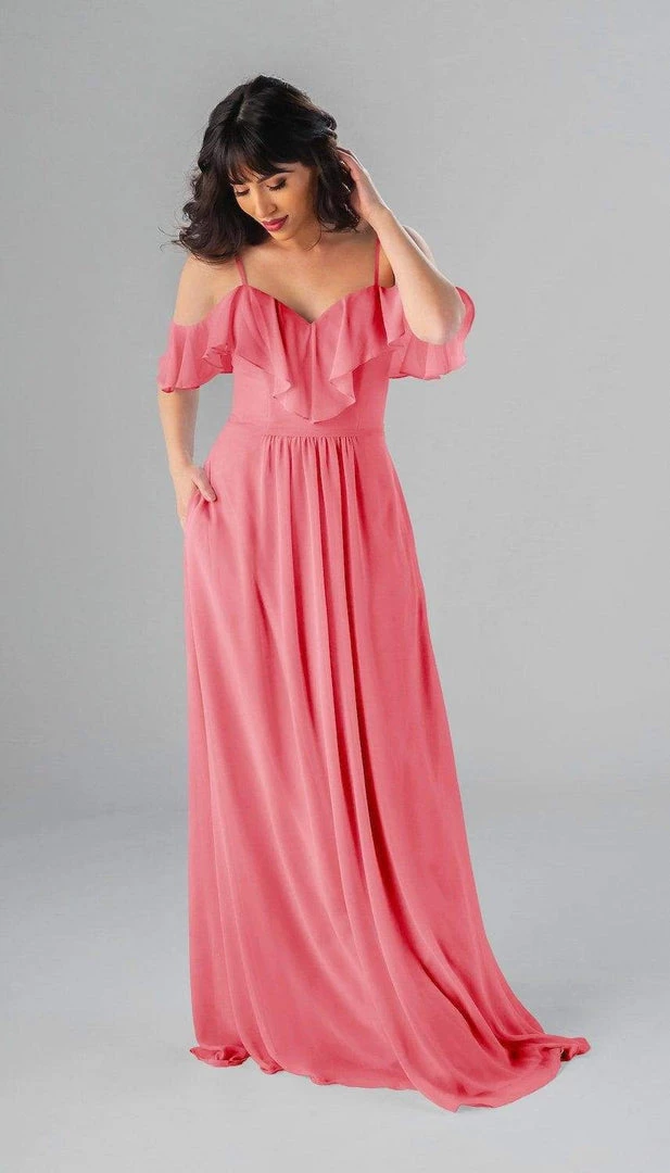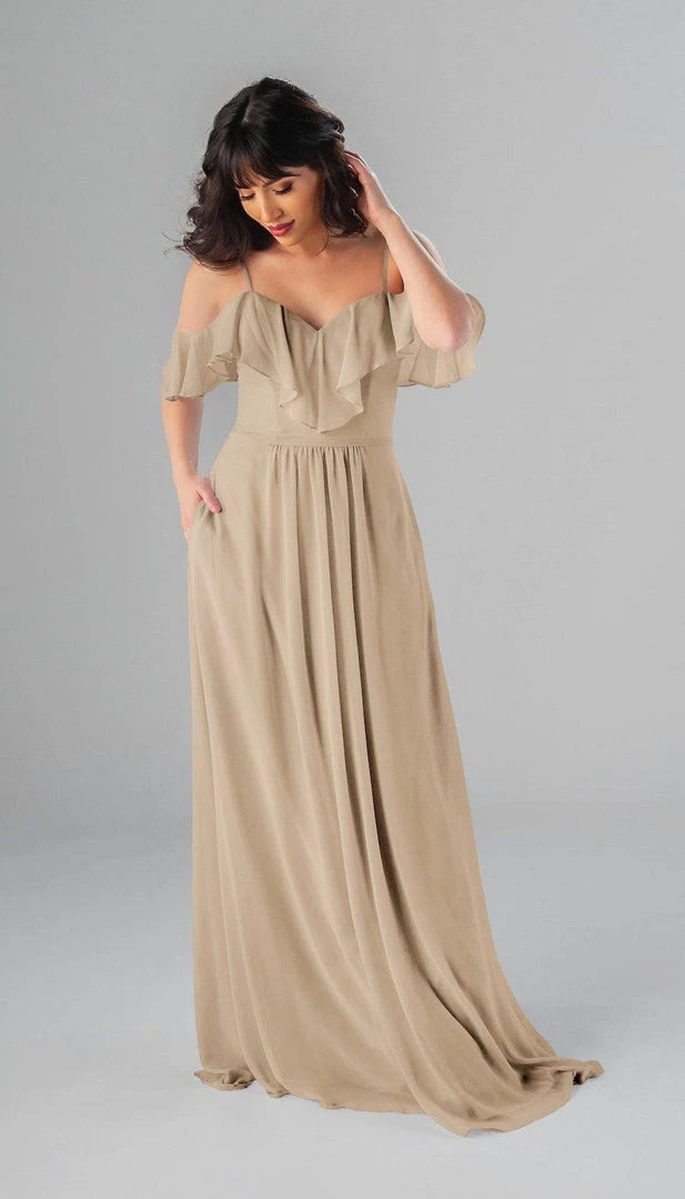 Emily is made from a flat chiffon fabric which is comfortable to wear and similar in quality to silk, but much easier to clean and care for. This dress is dry clean optional, but can also be washed regularly at home on a delicate cycle. Best of all, the exceptional quality of the flat chiffon means Emily will hold up over multiple washes so you can make the most of your dress.