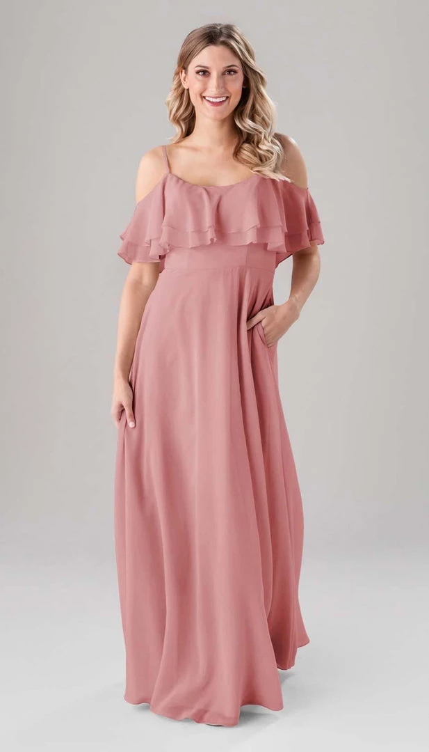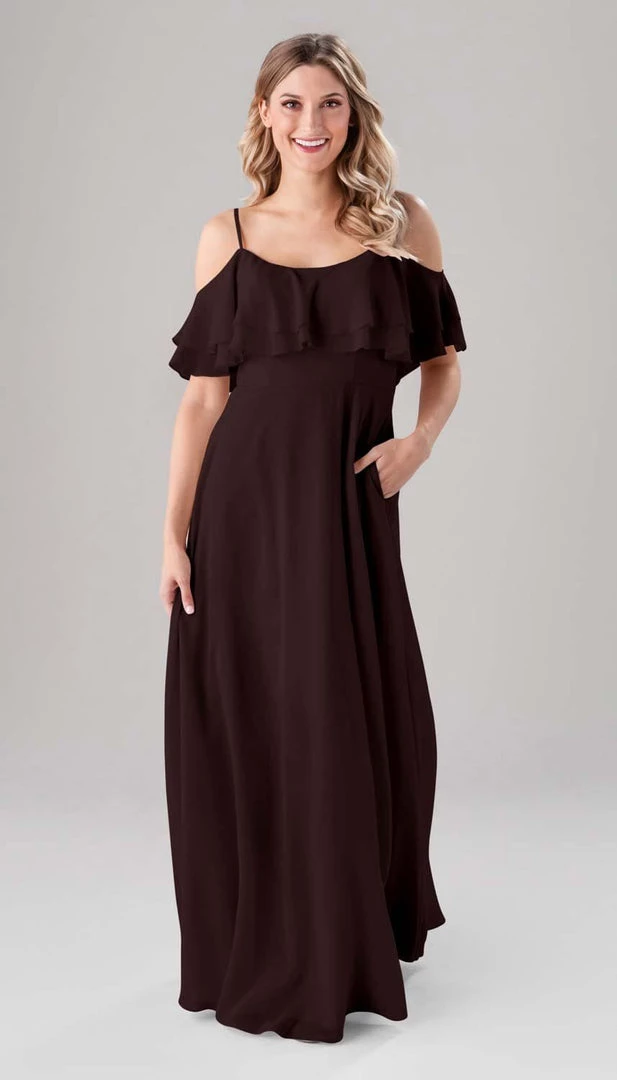Logan is a flowy, boho dress that we’re sure every bridesmaid will love! This modern bridesmaid dress features a ruffle top and a flowy, chiffon skirt. Our favorite part of this dress is the ruffled back, and we know that guests will love it, too!