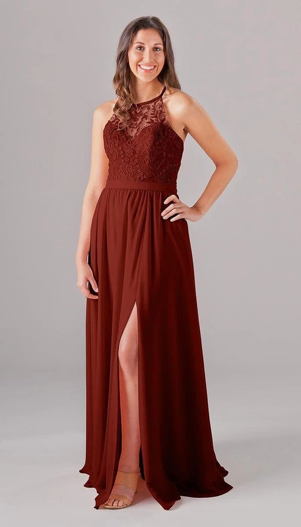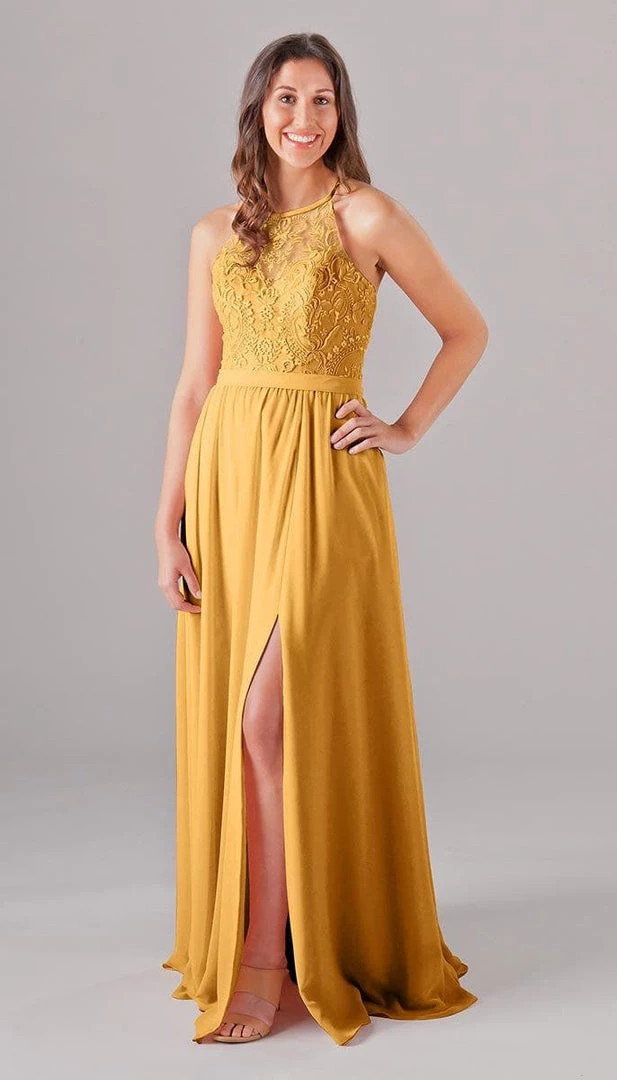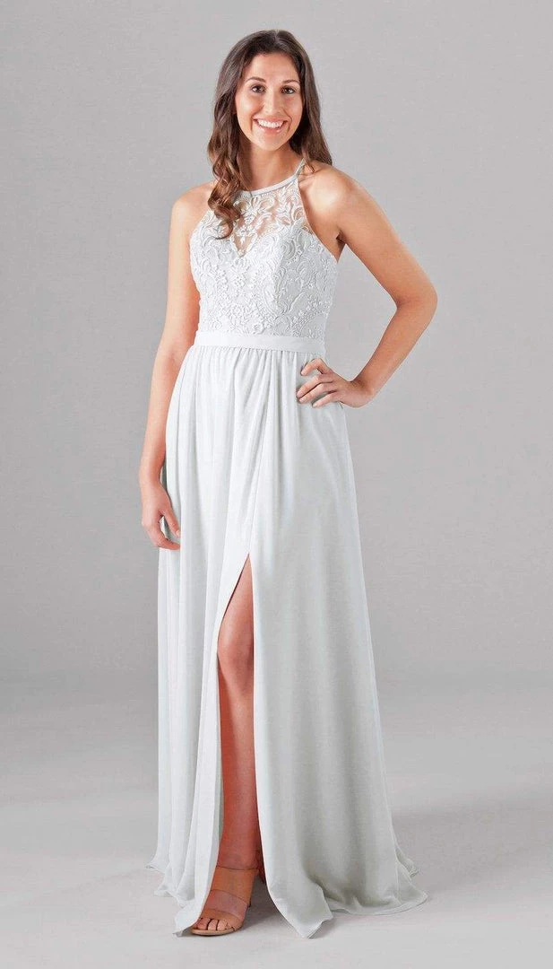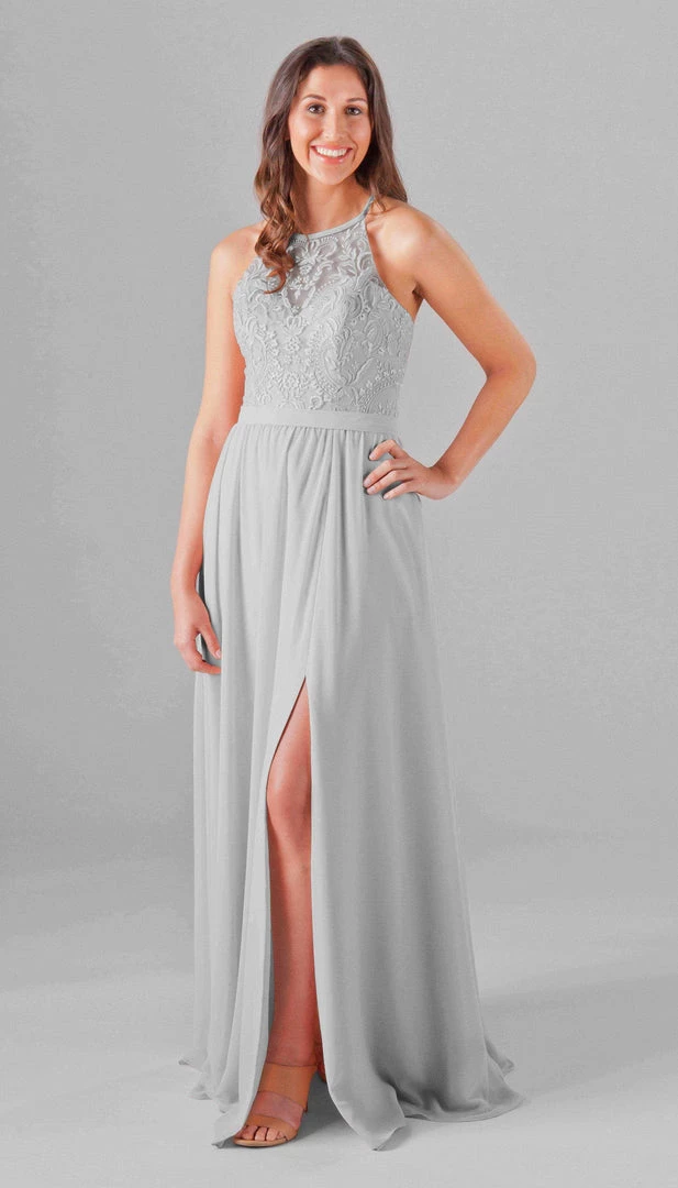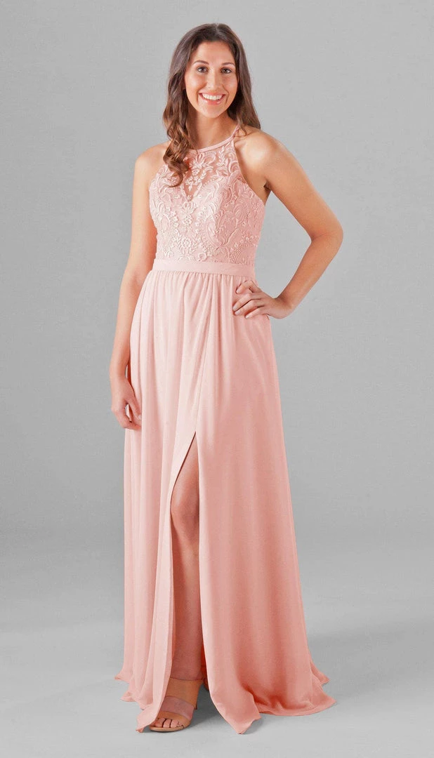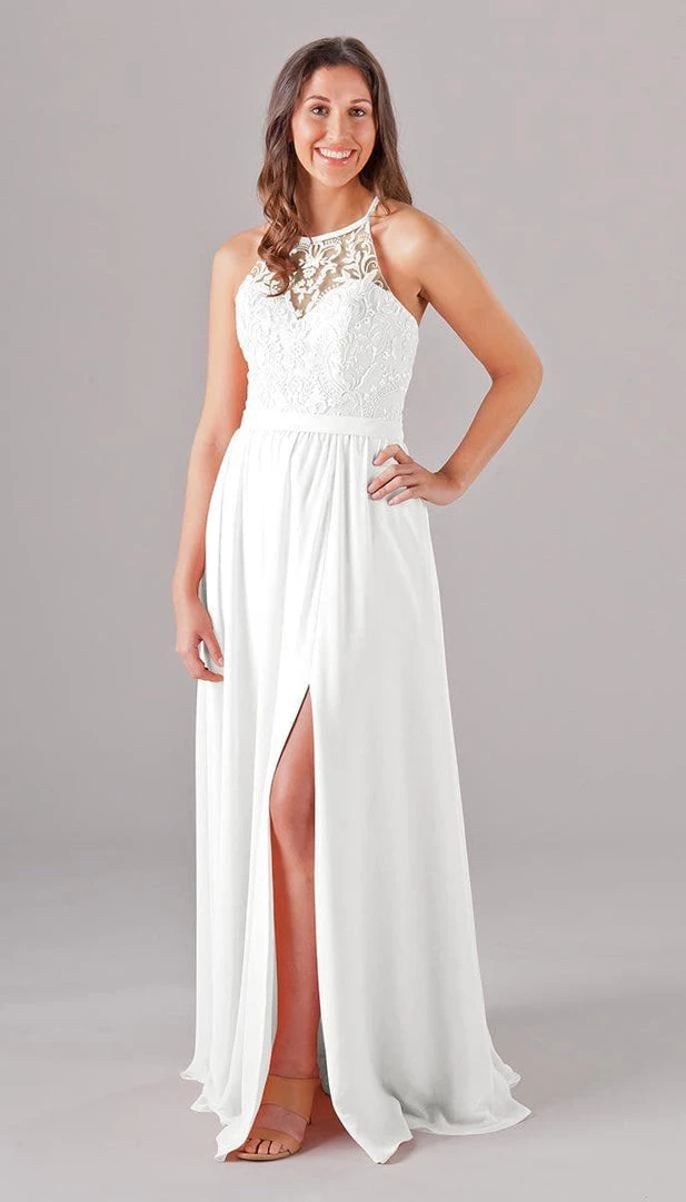 An elegant look with the floral embroidered bodice, Madeline is an extremely cute and comfortable dress for your bridesmaids! The halter neckline is very classy, and the unique X back will look gorgeous in your wedding pictures. Mix and match Madeline with other Kennedy Blue style dresses for a beautiful bridal party!
