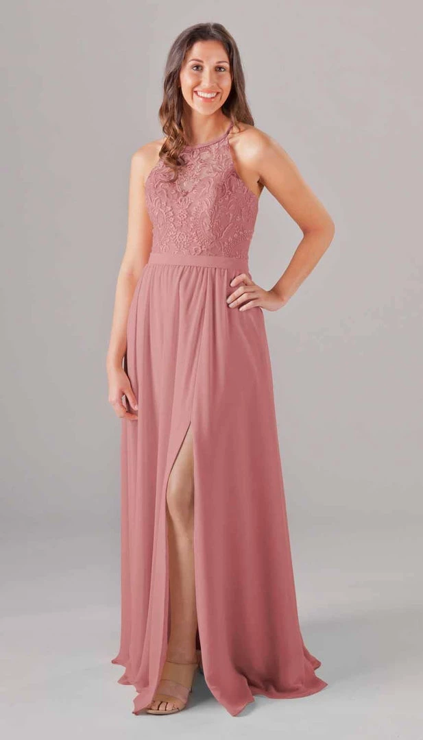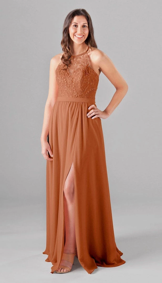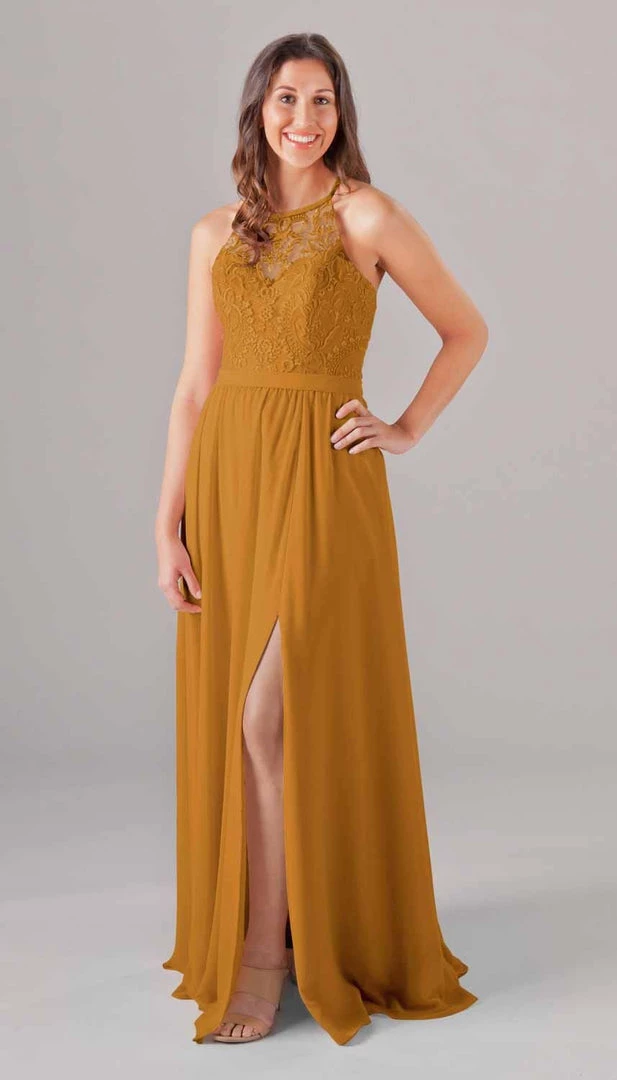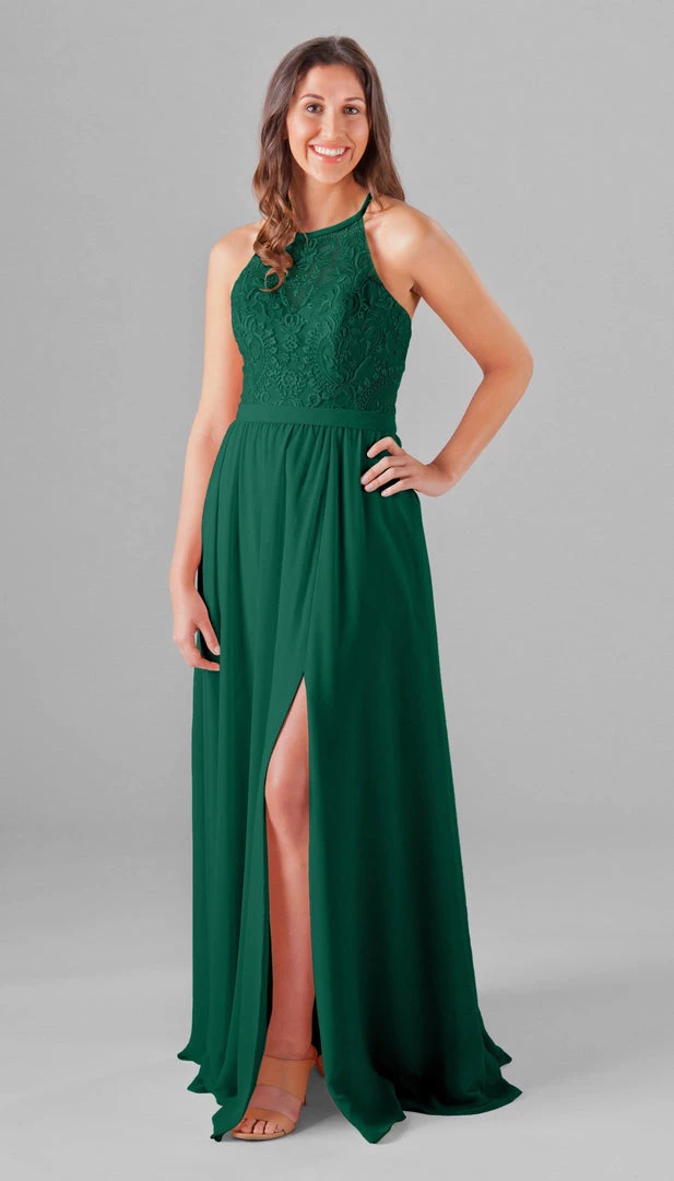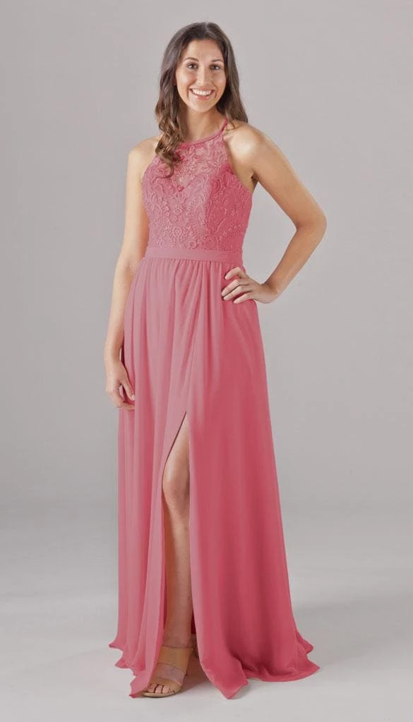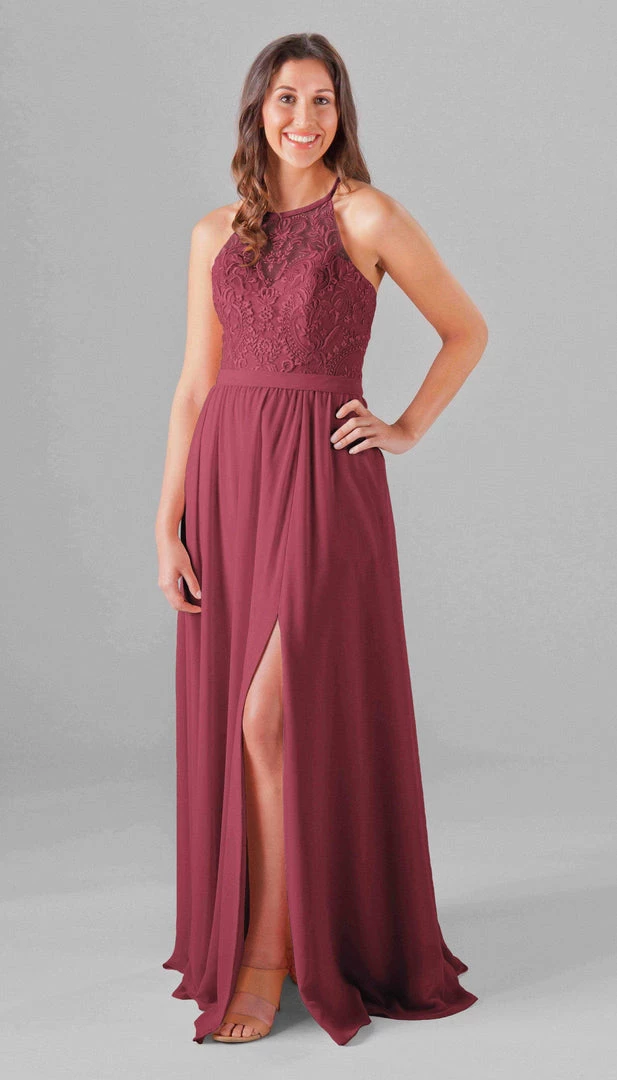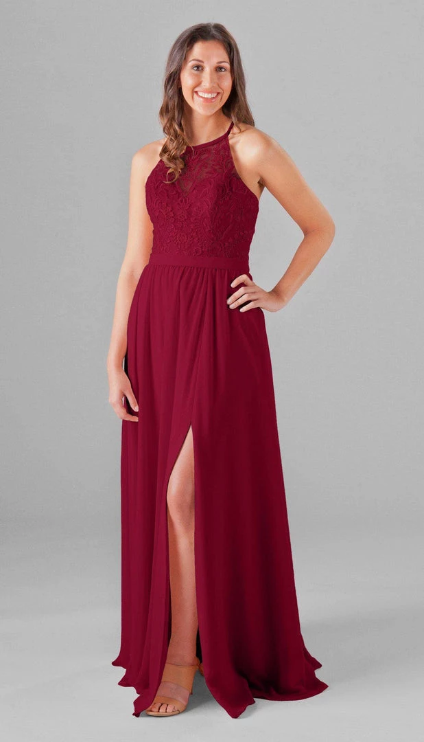 An elegant look with the floral embroidered bodice, Madeline is an extremely cute and comfortable dress for your bridesmaids! The halter neckline is very classy, and the unique X back will look gorgeous in your wedding pictures. Mix and match Madeline with other Kennedy Blue style dresses for a beautiful bridal party!