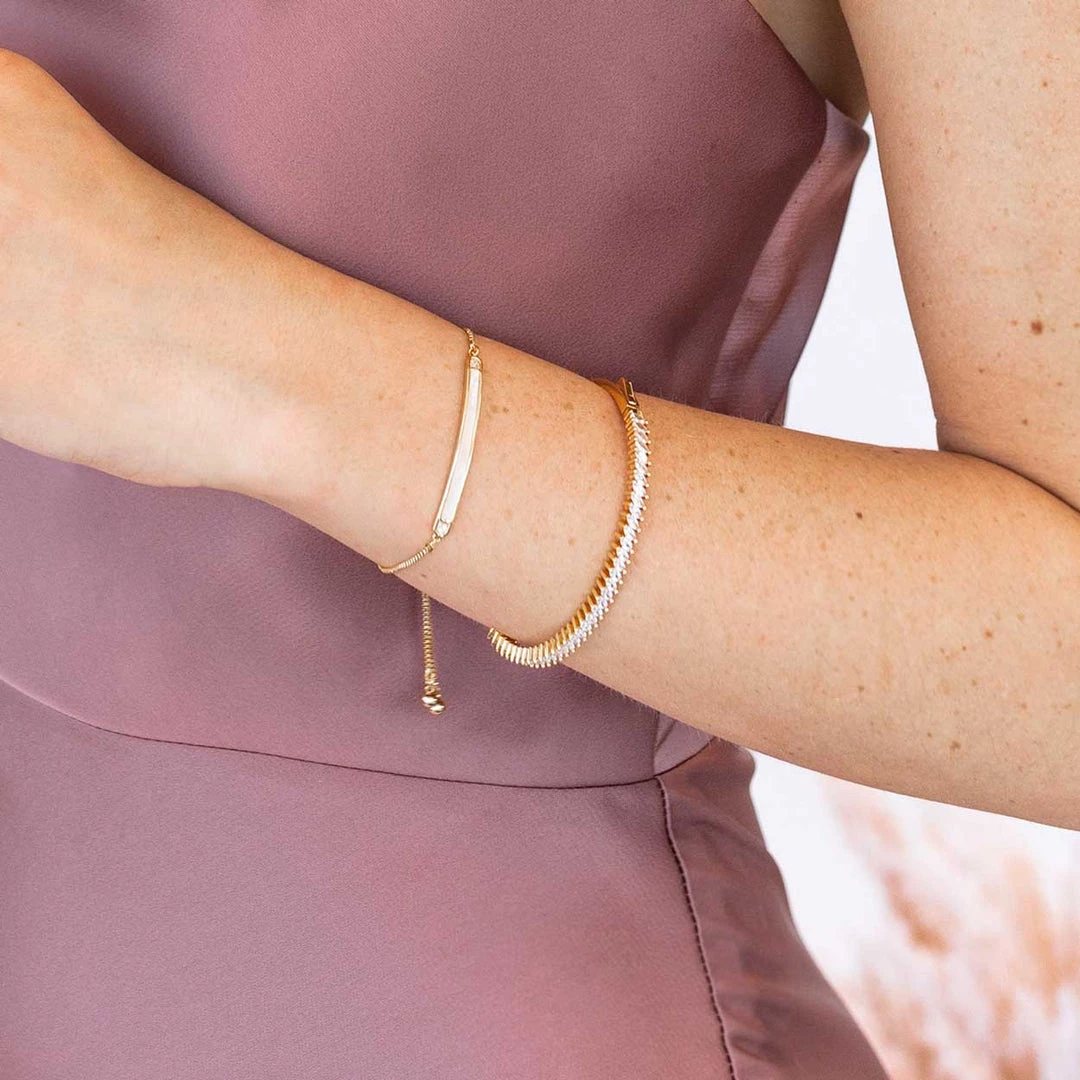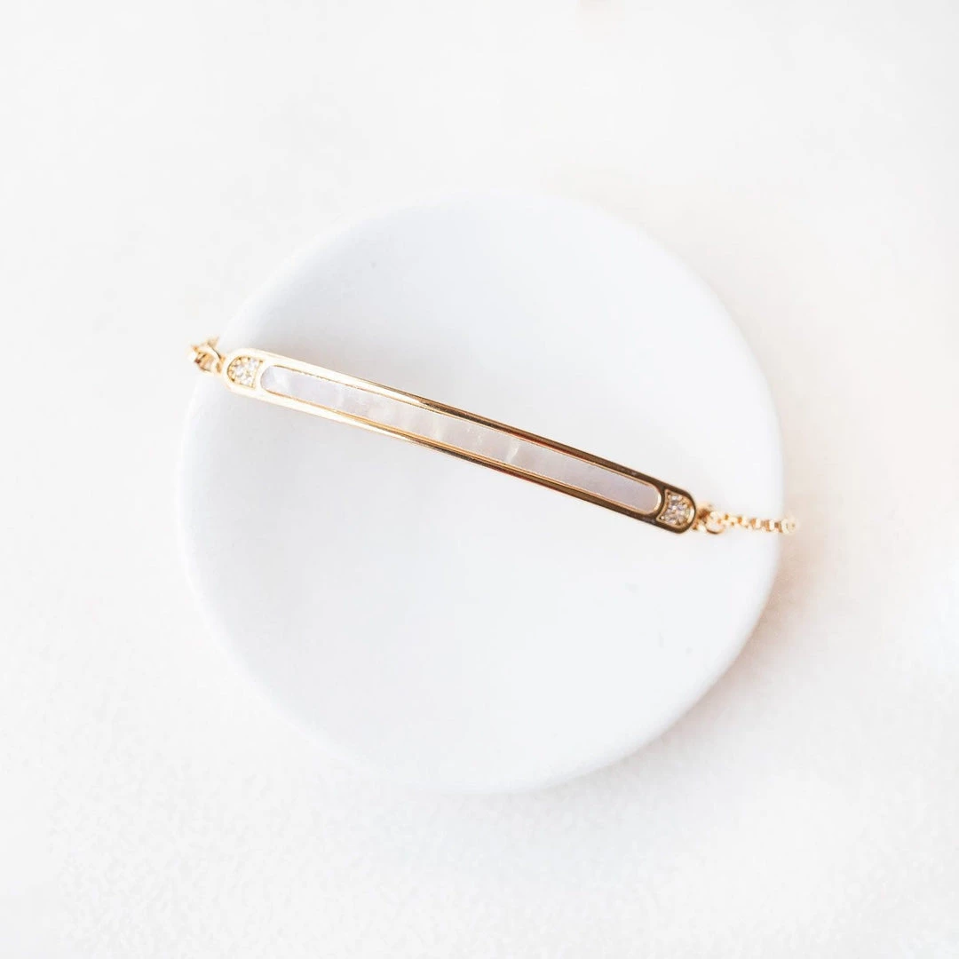 This stunning pearl bracelet enhances the simplistic yet stylish elements in gold or silver plated bracelet with an adjustable lariat design. It features ornate zirconia crystal stones that complement the striking mother of pearl look. This fine bracelet is perfect as wedding jewelry or an exquisite ornament that looks great on any occasion.