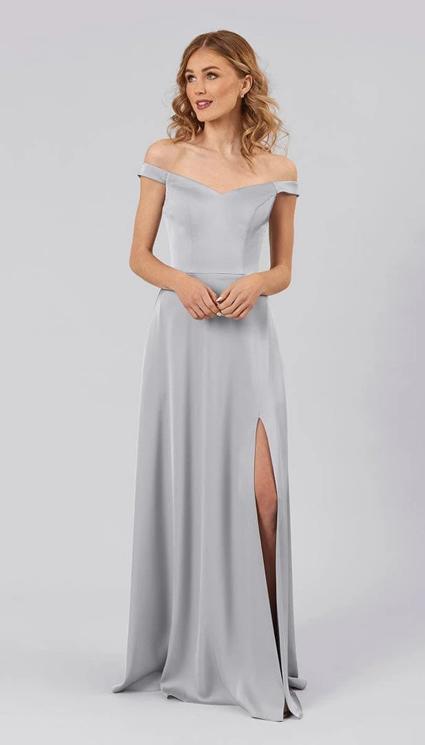 Arwen is a light weight high quality satin bridesmaids dress with a sassy slit, flowing a-line skirt, and romantic off the shoulder neckline. This silhouette is designed to flatter all shapes and sizes of bridesmaids. It is the perfect balance of class, sass, and style.
