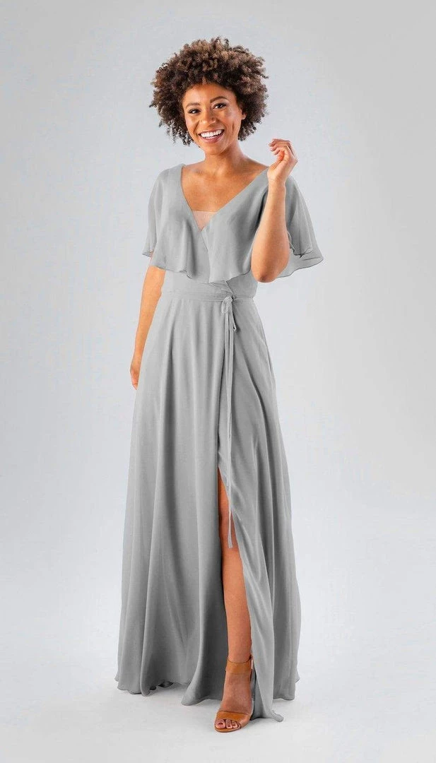 This chiffon bridesmaid dress is a part of our At Home Try-On collection of sample dresses! To try the Courtney bridesmaid dress on at home, you can choose from the sizes and colors available to help decide on the perfect style and size for you.