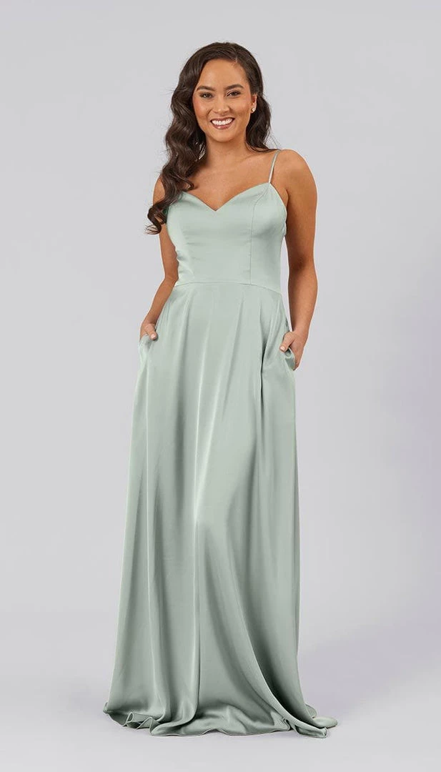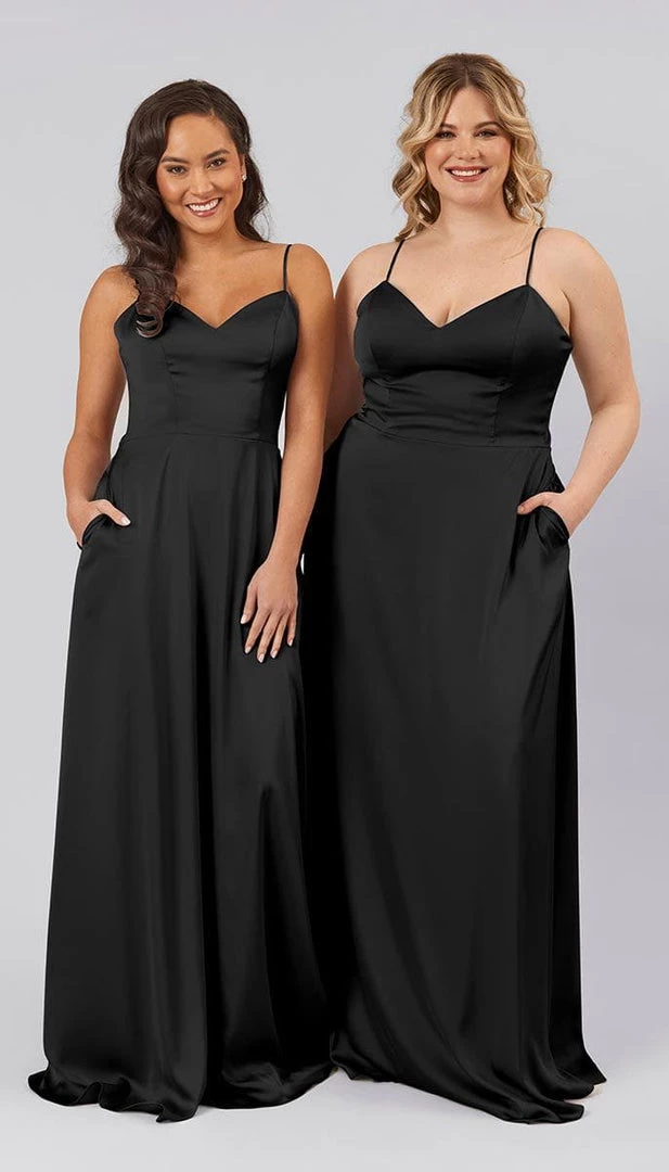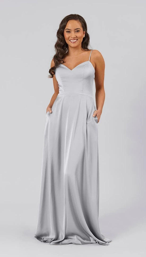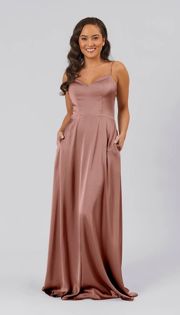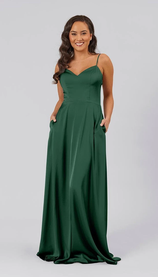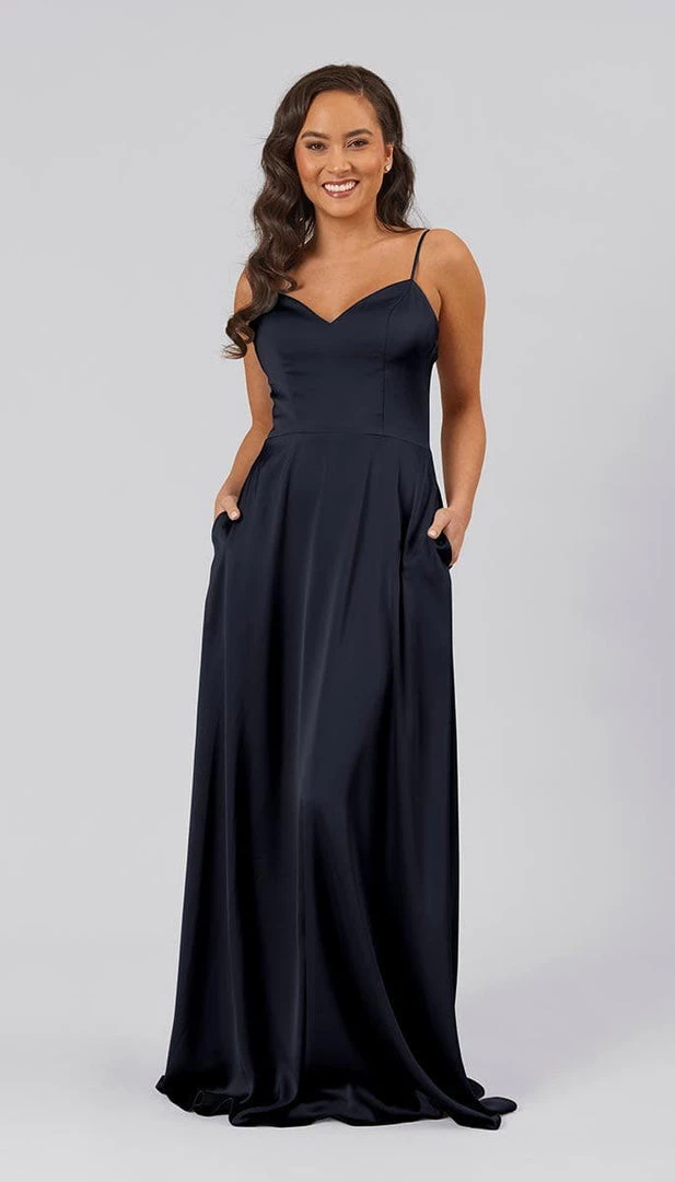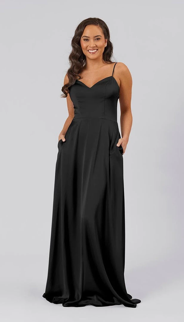Dawson is our modern take on the classic bridesmaids dress. It is made from an affordable and high quality satin. This dress is simple, casual, and flattering on many body types. It features a v-neckline, clean bodice, pockets, and a-line skirt. This lovely dress has adjustable straps for the perfect fit!