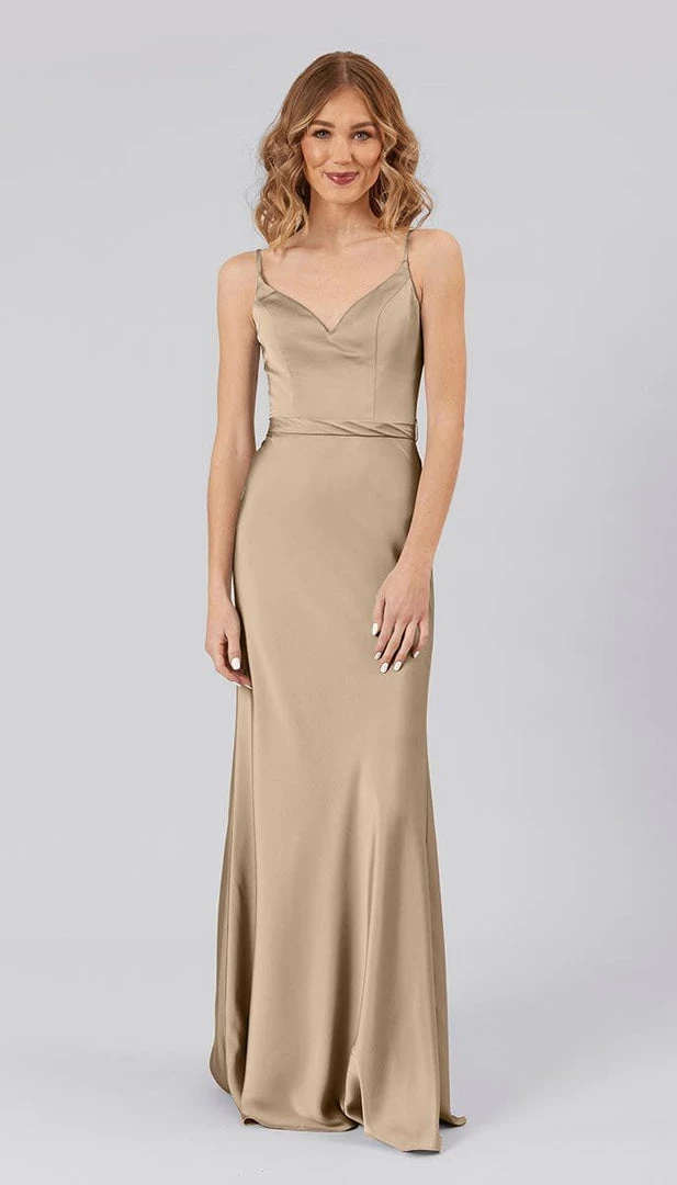Demi is an affordable, high quality satin bridesmaids dress. This dress features a v-neckline and a fitted skirt for an elegant, sophisticated and classic silhouette. The belt on this dress highlights the waist beautifully and provides a figure-hugging silhouette. It also features adjustable straps for added comfort and ease.