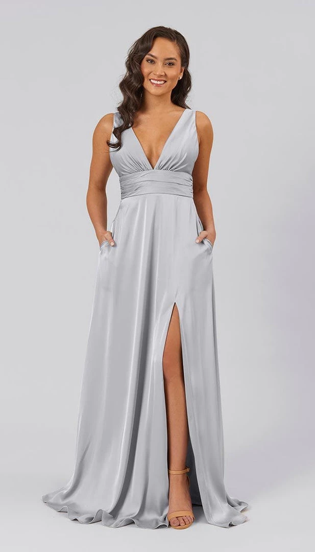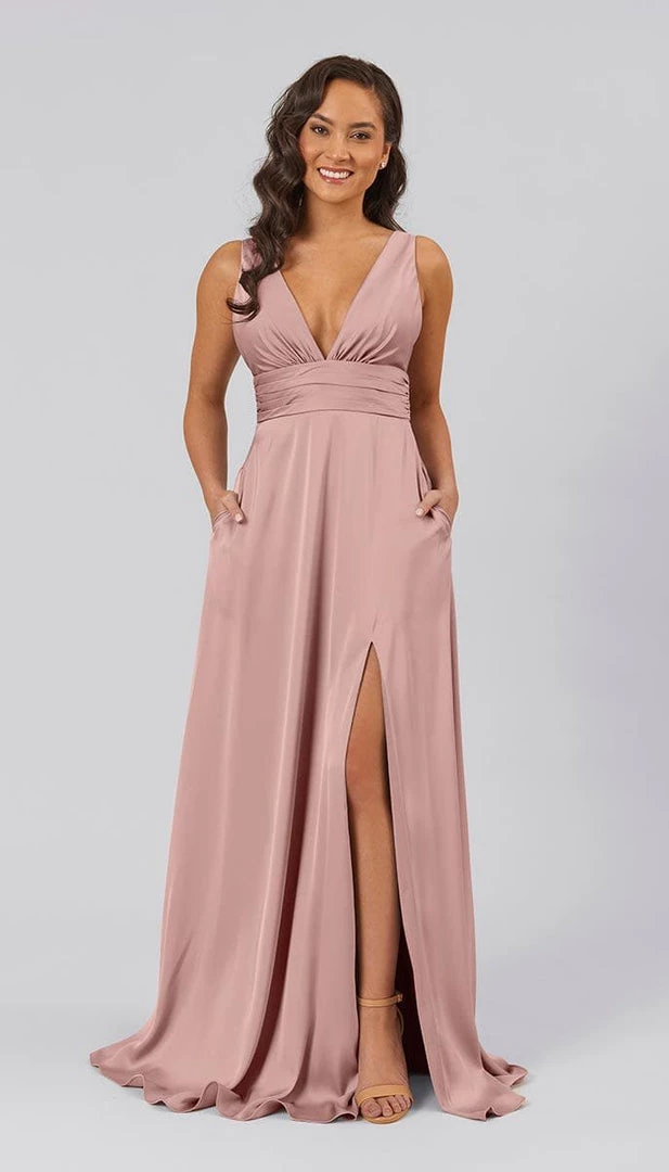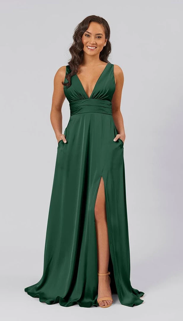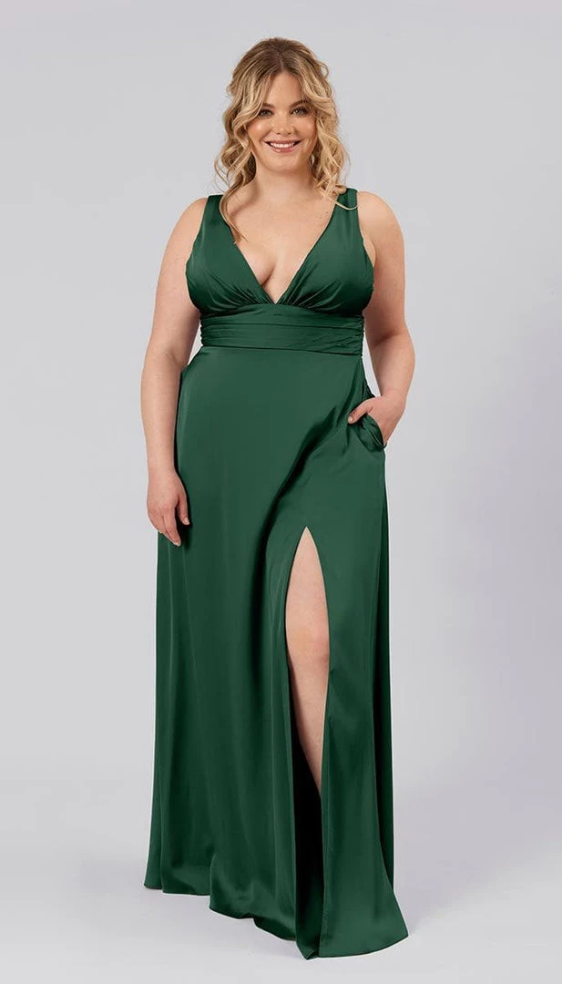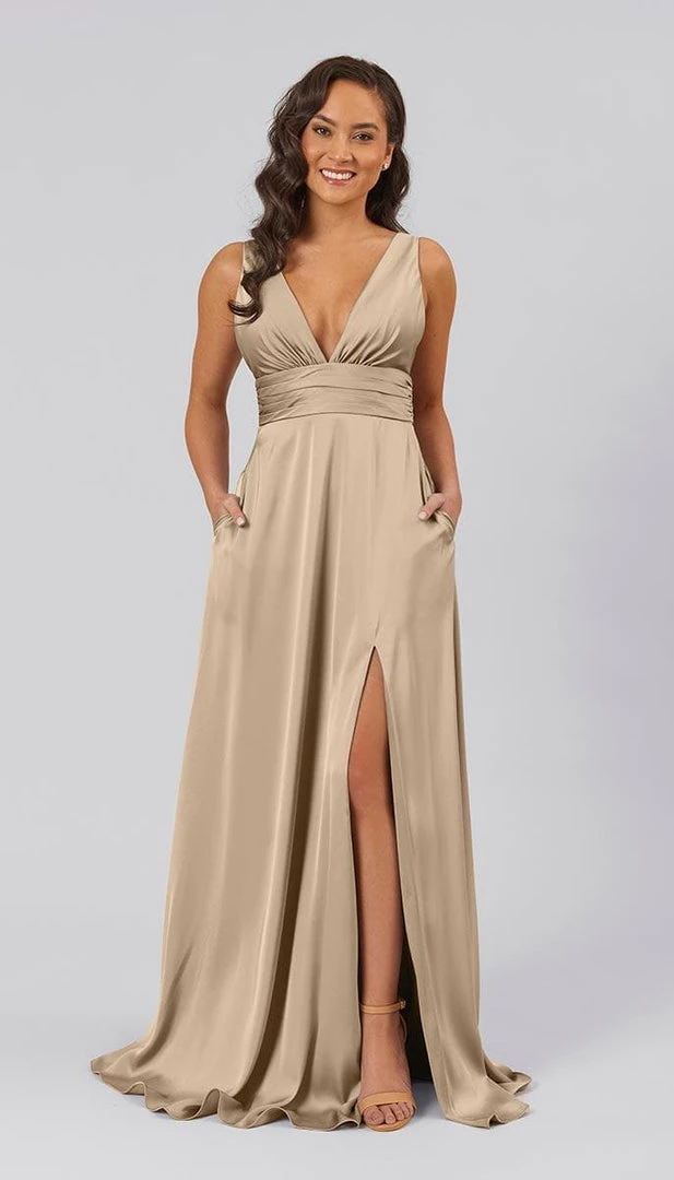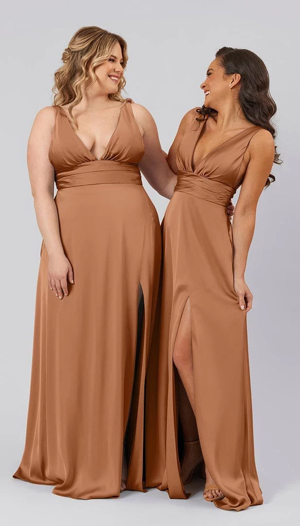 Floating down the aisle in a showstopper dress like Dottie, makes for an unforgettable moment. With features like a plunging v-neckline, open v-back, defined ruched waistline, and an a-line skirt with a subtle slit, this bridesmaids dress is flirty, sassy, and flattering. This affordable high quality satin bridesmaids dress is perfect for your bridal party.
