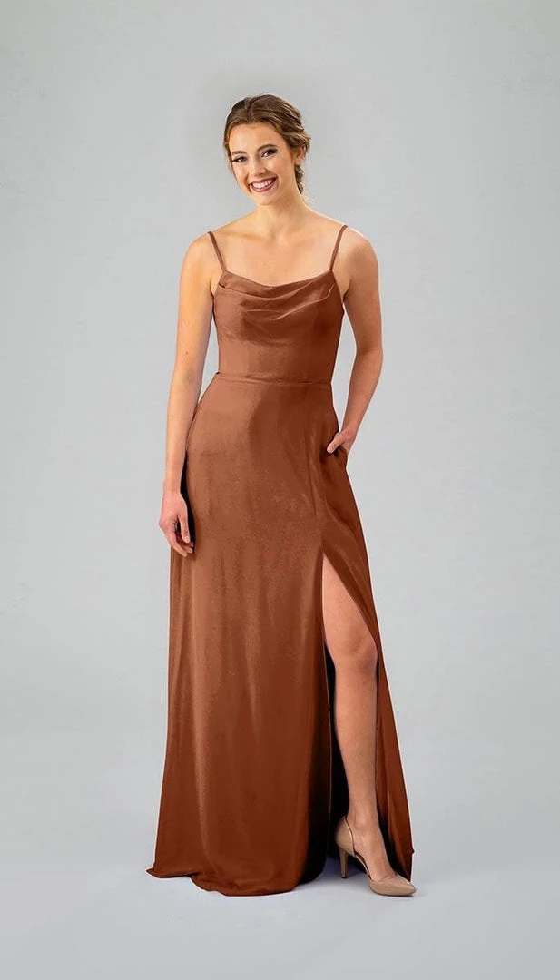 It’s time for elegance! This slim-fit beauty features a cowl neckline, spaghetti straps, and a stylish slit. Our Felicity bridesmaid dress is truly a modern take on a classic look.
