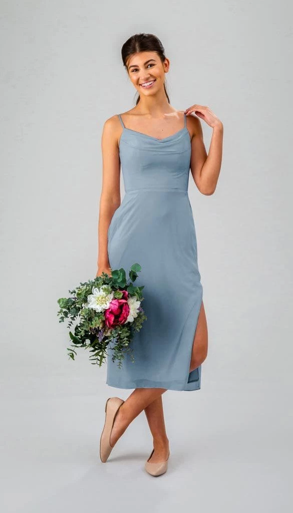 Have we told you how much we LOVE a cowl neckline? They’re flattering and fashionable! This flirty, fitted, midi bridesmaid dress is sure to dazzle at any event!