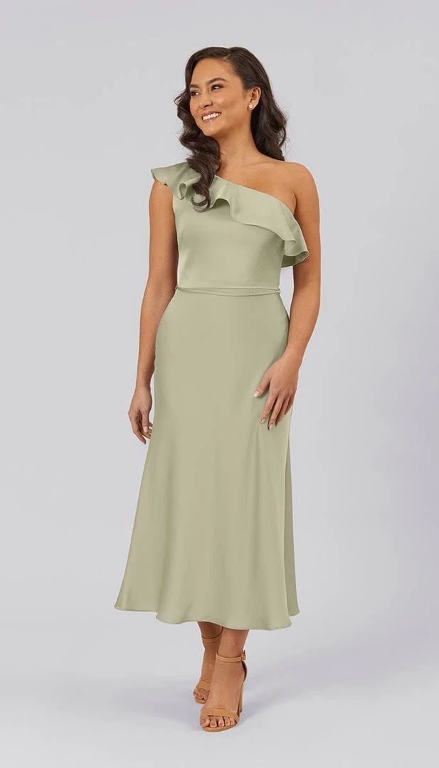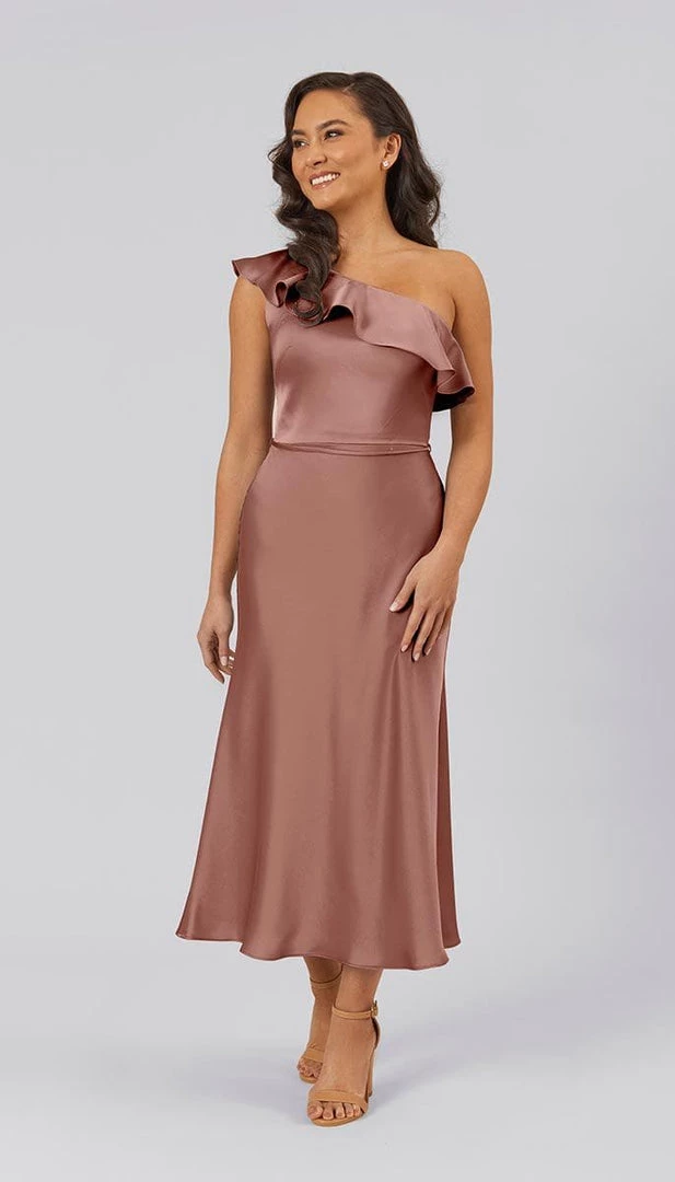 This satin ruffle one-shoulder dress is the perfect flirty, fun, and feminine option for your bridesmaids. Freya is made from the highest quality lightweight satin and features a bold ruffle detail at the shoulder. With its cocktail length and flattering shape, Freya is sure to make a statement on your special day.