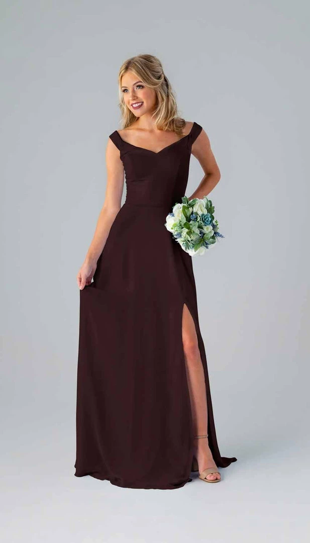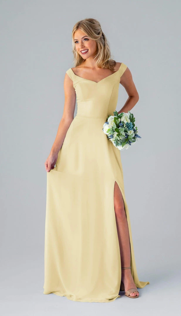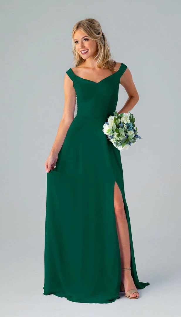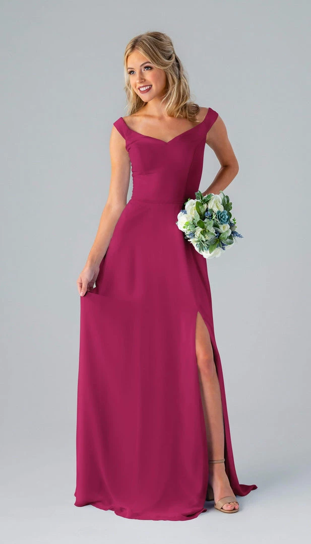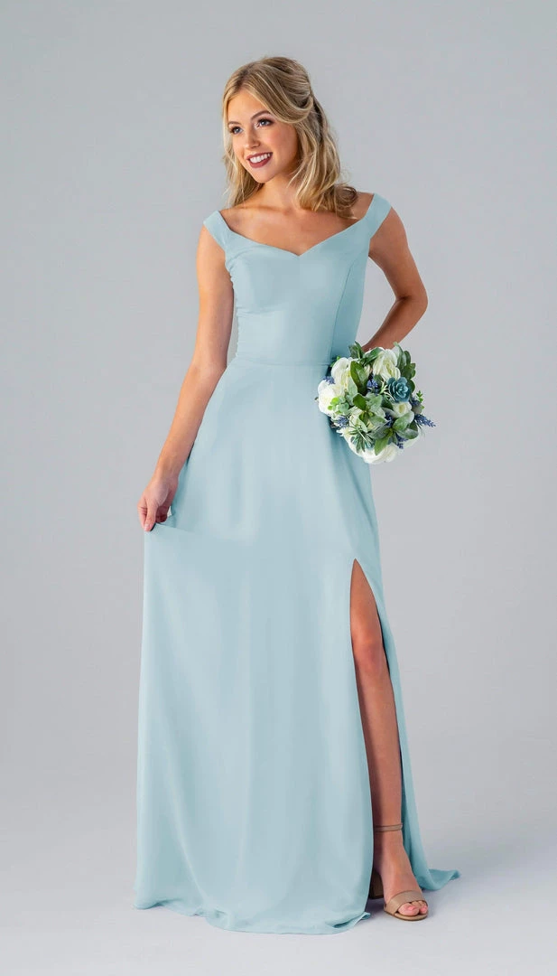 This dress is a part of our At Home Try-On collection of sample dresses! To try the off the shoulder Haley bridesmaid dress on at home, you can choose from the sizes and colors available to help decide on the perfect style and size for you.
