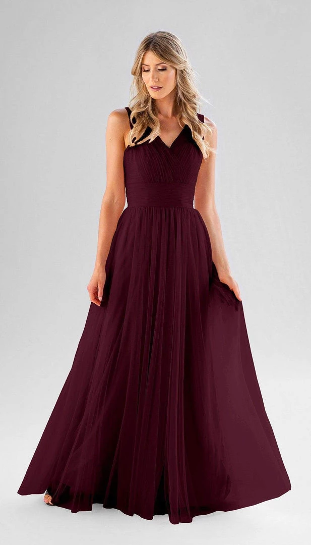This tulle bridesmaid dress is a part of our At Home Try-On collection of sample dresses! To try the Joelle bridesmaid dress on at home, you can choose from the sizes and colors available to help decide on the perfect style and size for you.