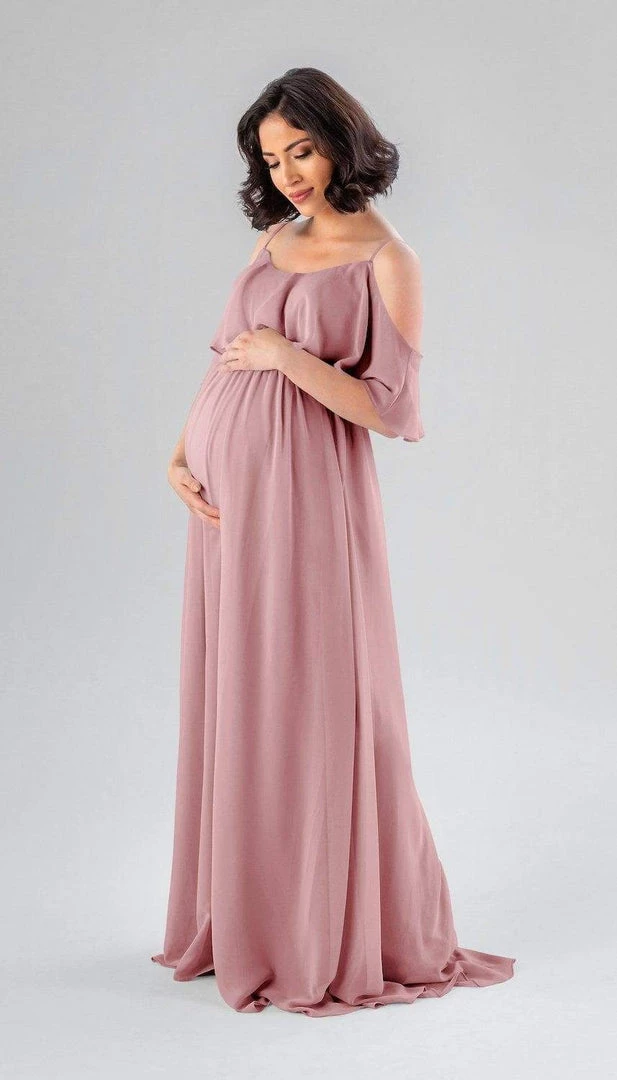 This dress is a part of our At Home Try-On collection of sample dresses! To try the Krystal maternity bridesmaid dress on at home, you can choose from the sizes and colors available to help decide on the perfect style and size for you.