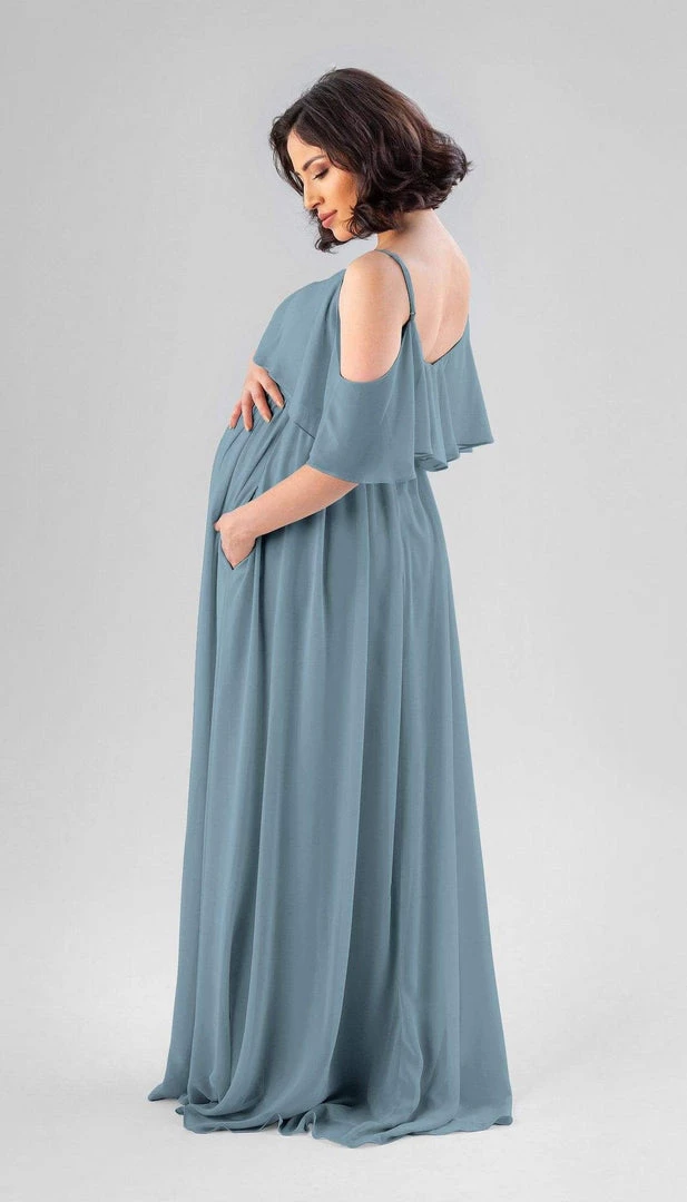 This dress is a part of our At Home Try-On collection of sample dresses! To try the Krystal maternity bridesmaid dress on at home, you can choose from the sizes and colors available to help decide on the perfect style and size for you.