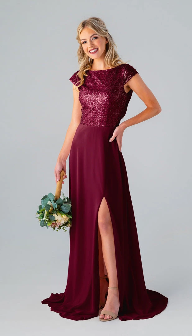 This dress is a part of our At Home Try-On collection of sample dresses! To try the sequin and chiffon London bridesmaid dress on at home, you can choose from the sizes and colors available to help decide on the perfect style and size for you.