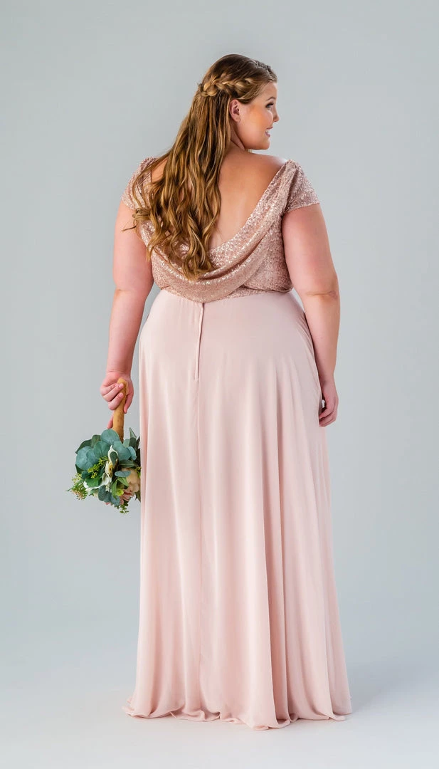 This dress is a part of our At Home Try-On collection of sample dresses! To try the sequin and chiffon London bridesmaid dress on at home, you can choose from the sizes and colors available to help decide on the perfect style and size for you.