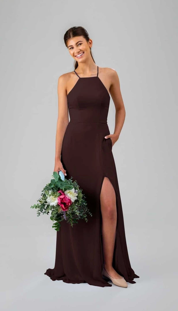 Nothing says chic like a high neckline and detailed back! This breathtaking Kennedy Blue bridesmaid dress will hug your curves perfectly. Feel smart and confident as you celebrate love!