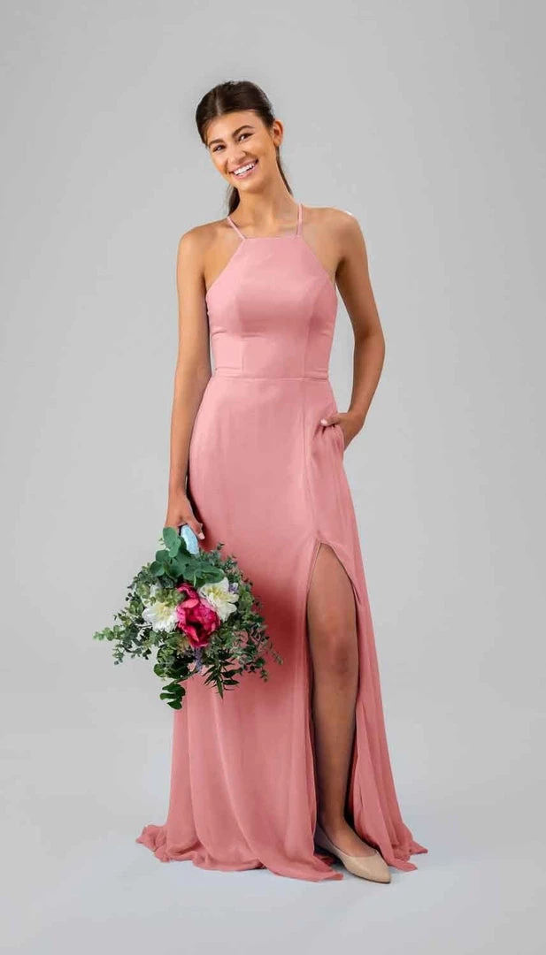 Nothing says chic like a high neckline and detailed back! This breathtaking Kennedy Blue bridesmaid dress will hug your curves perfectly. Feel smart and confident as you celebrate love!
