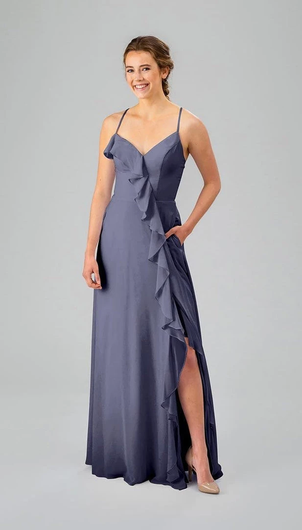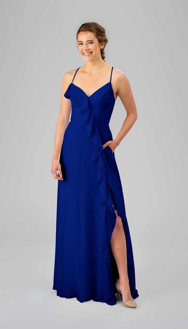 What can we say? We’re hopeless romantics! With a sweetheart neckline, cascading ruffles and a stylish slit, this dreamy Kennedy Blue bridesmaid dress will leave you walking on air!