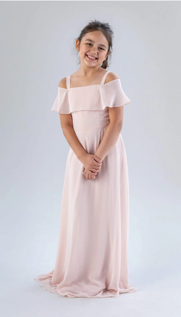 This dress is a part of our At Home Try-On collection of sample dresses! To try the Nica junior bridesmaid dress on at home, you can choose from the sizes and colors available to help decide on the perfect style and size for you.