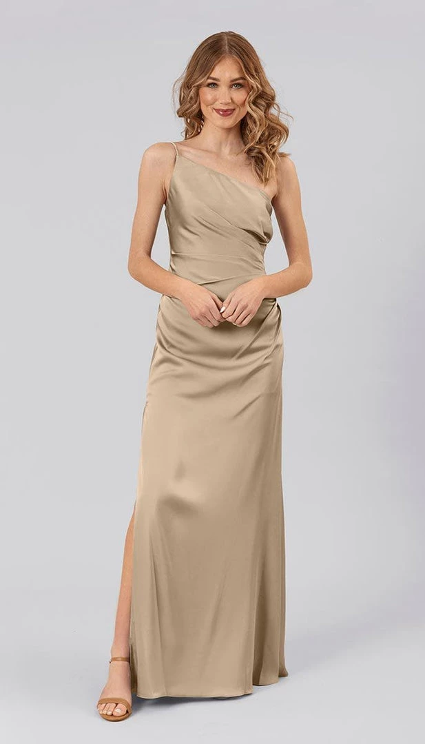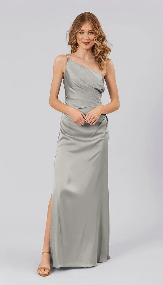 The Reid is an affordable, sleek, sophisticated high quality satin bridesmaids dress that’s the perfect blend of edgy and elegant. This dress is all about flattering any body type with its one-shoulder adjustable strap and ruching along the bodice and skirt. You’re welcome!
