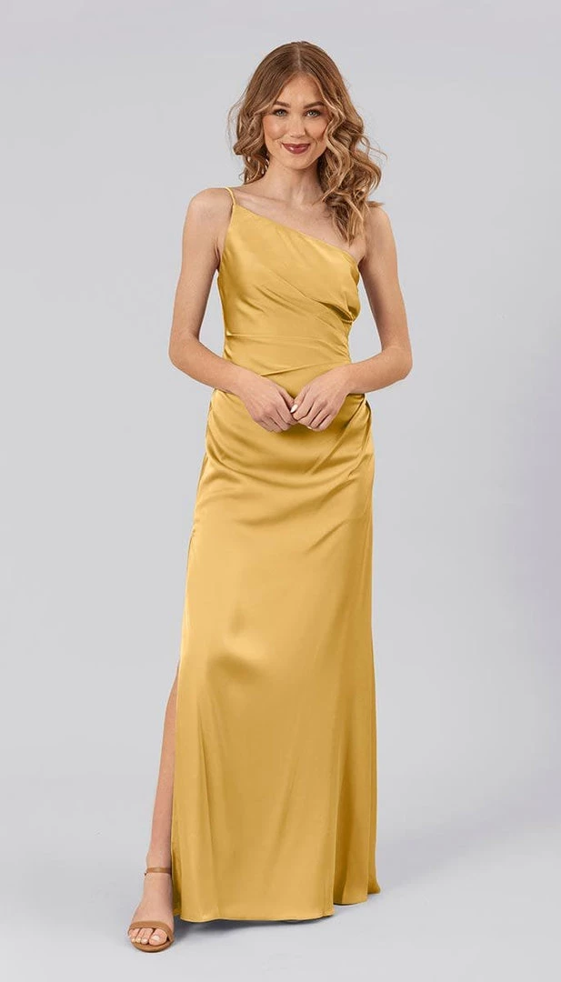 The Reid is an affordable, sleek, sophisticated high quality satin bridesmaids dress that’s the perfect blend of edgy and elegant. This dress is all about flattering any body type with its one-shoulder adjustable strap and ruching along the bodice and skirt. You’re welcome!