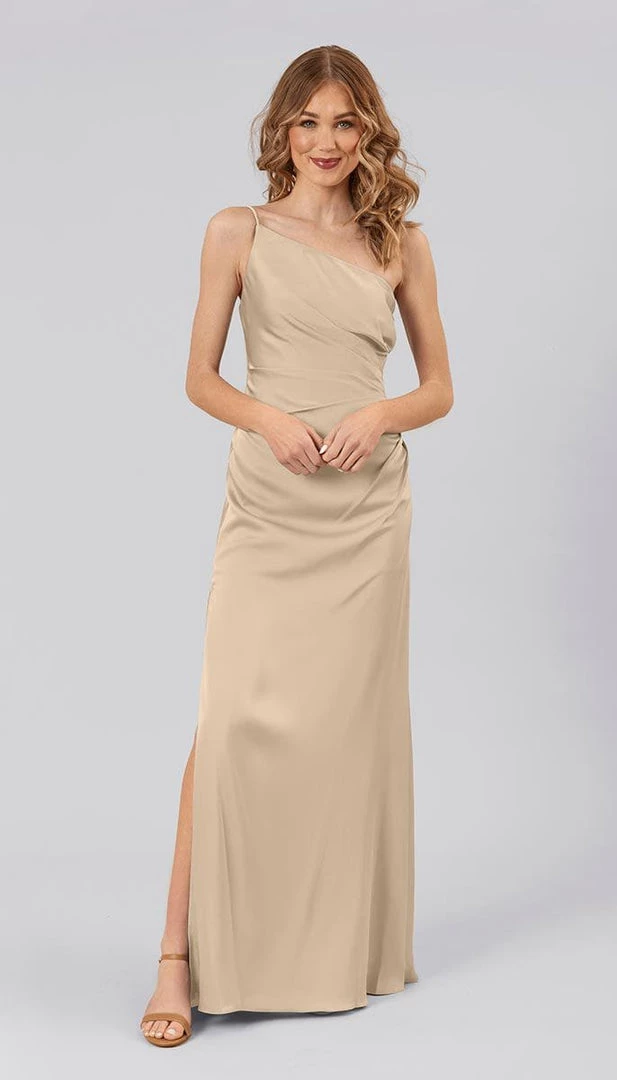 The Reid is an affordable, sleek, sophisticated high quality satin bridesmaids dress that’s the perfect blend of edgy and elegant. This dress is all about flattering any body type with its one-shoulder adjustable strap and ruching along the bodice and skirt. You’re welcome!