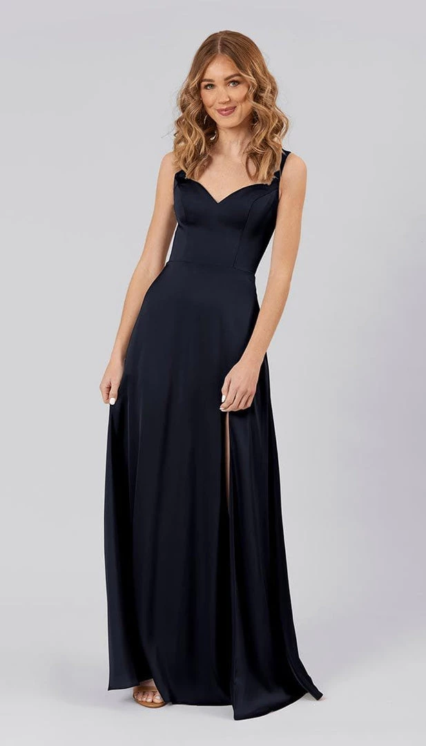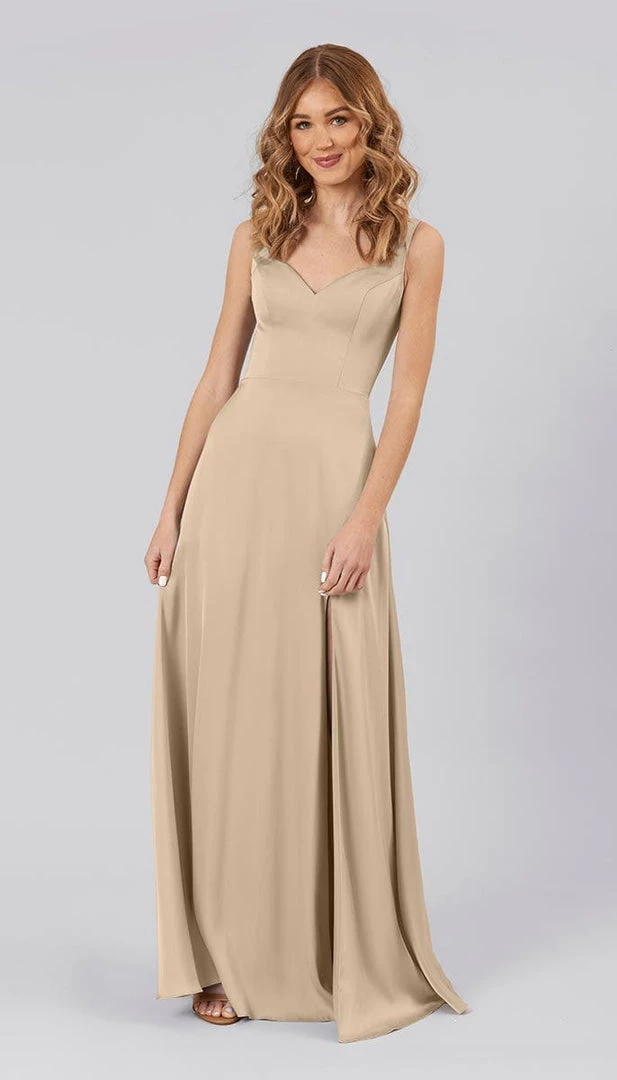 A minimal and classic dress, the Sabrina is a universally flattering bridesmaid option. With a sweetheart neckline, and flowing a-line skirt and slit. This dress also features subtle pockets in the skirt! This dress is cut for superior comfort in our new high quality and lightweight satin fabric!