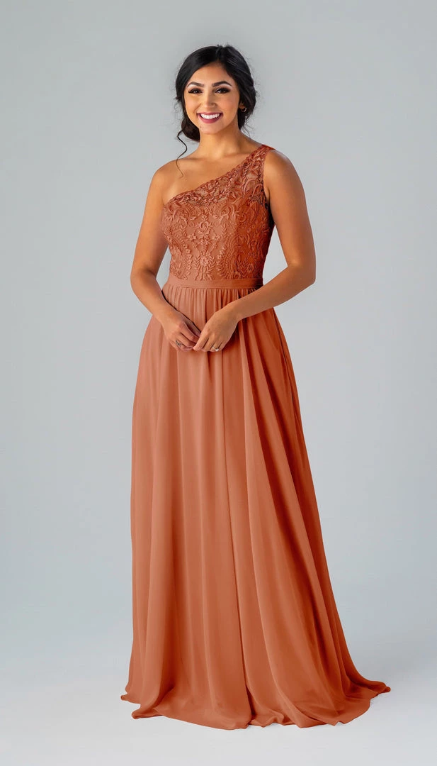 This dress is a part of our At Home Try-On collection of sample dresses! To try the one shoulder embroidered lace Sutton bridesmaid dress on at home, you can choose from the sizes and colors available to help decide on the perfect style and size for you.