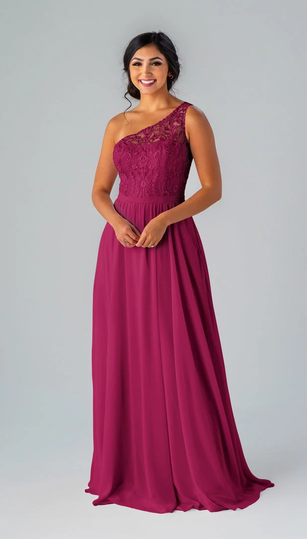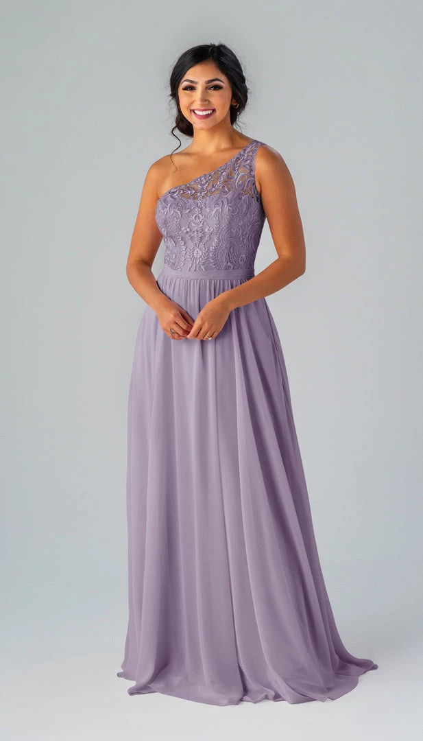 This dress is a part of our At Home Try-On collection of sample dresses! To try the one shoulder embroidered lace Sutton bridesmaid dress on at home, you can choose from the sizes and colors available to help decide on the perfect style and size for you.