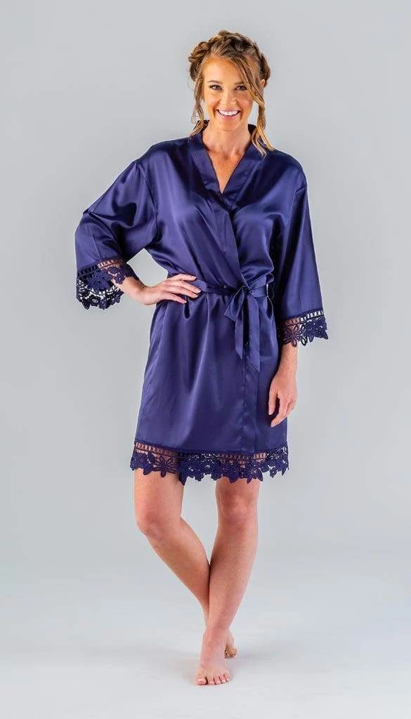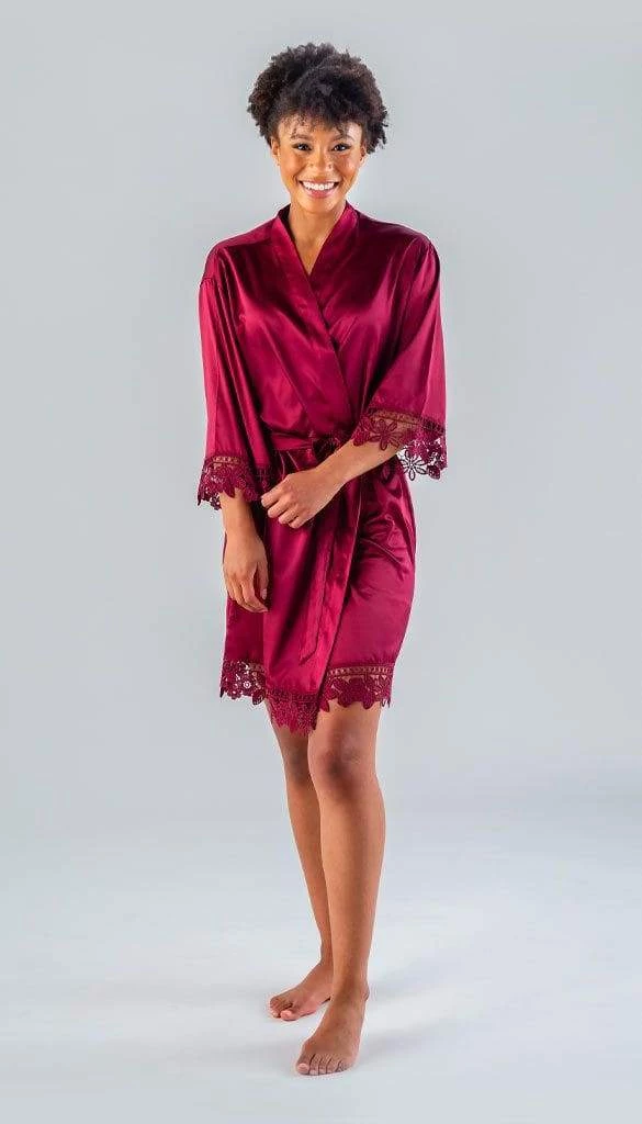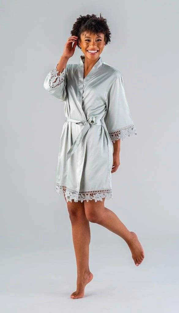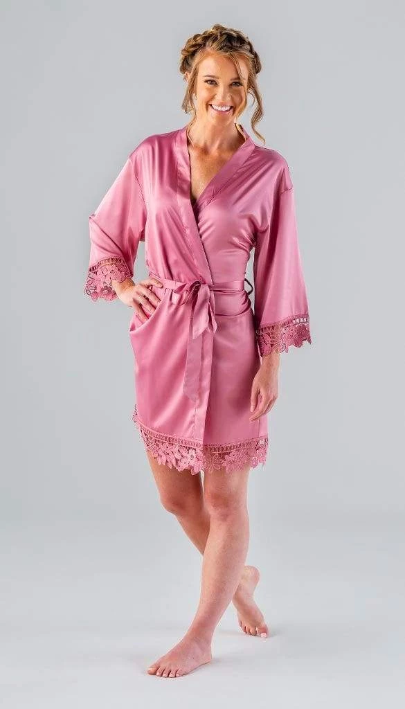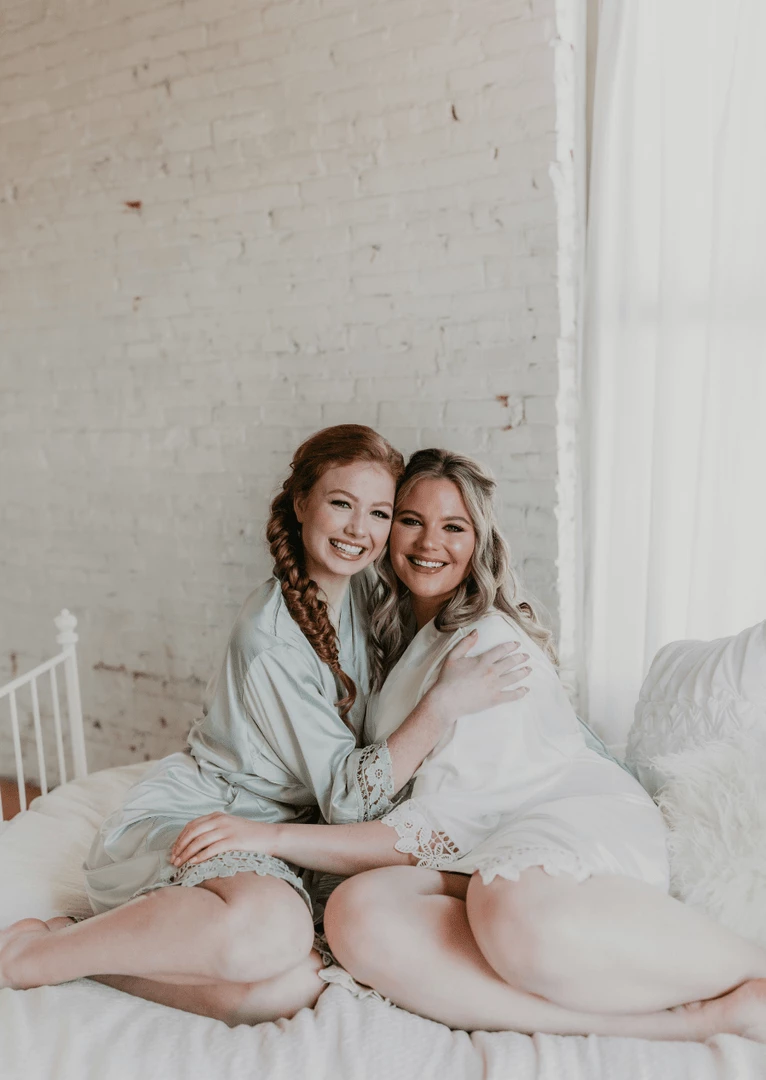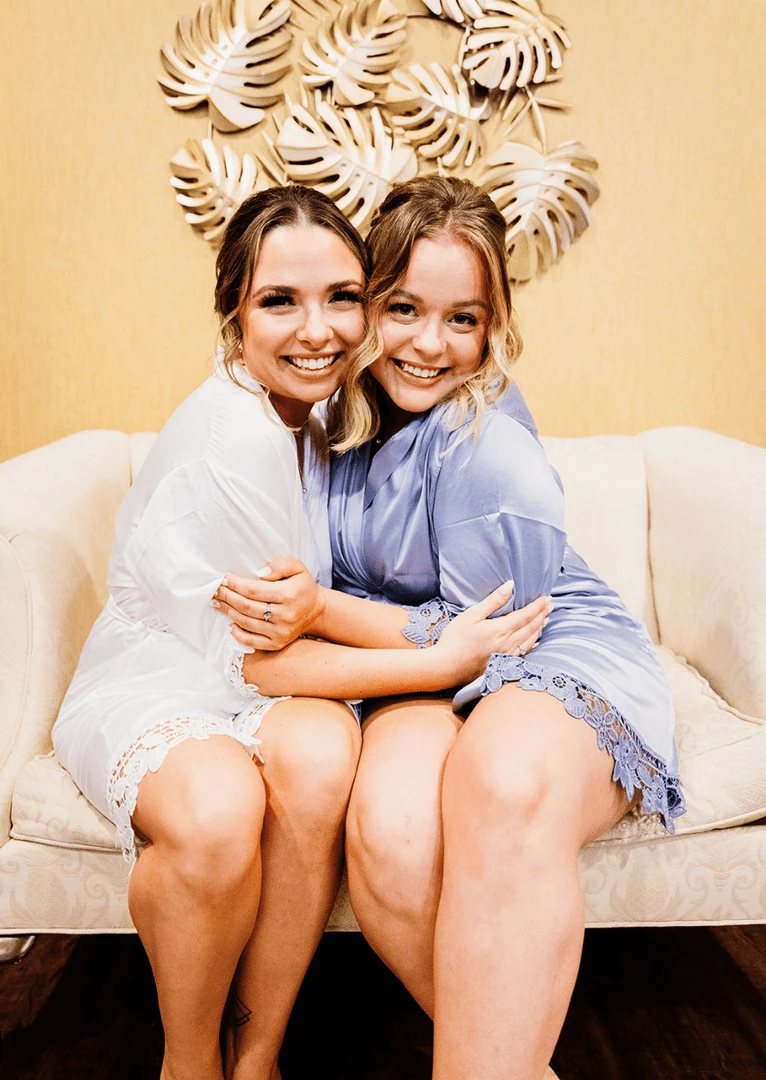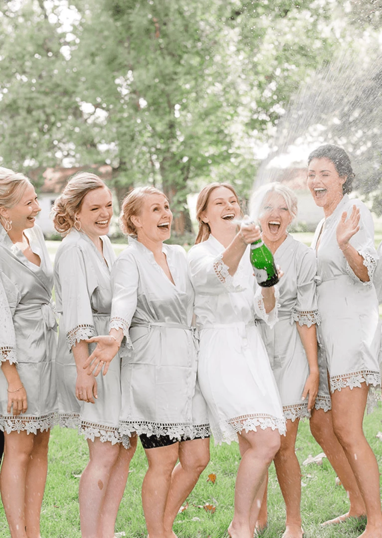 Everyone will be moving around prepping & doing makeup/hair. Our robes are lightweight satin and lace. This makes them cool and comfortable. Since you will be on the move, we designed these wrap-style robes with a tie belt to help keep the robe secured.