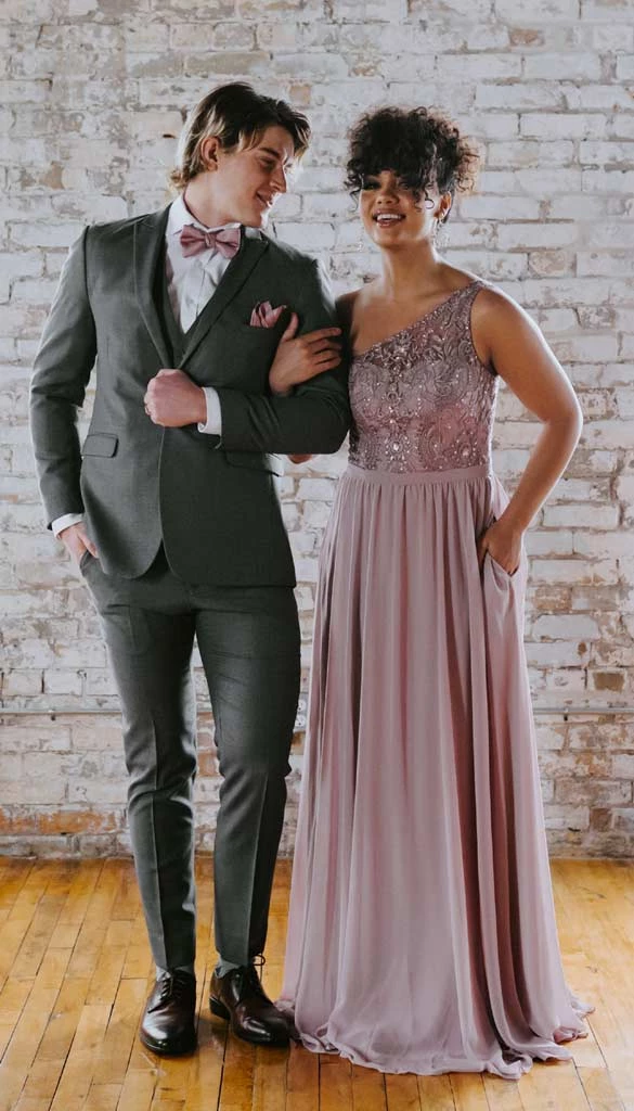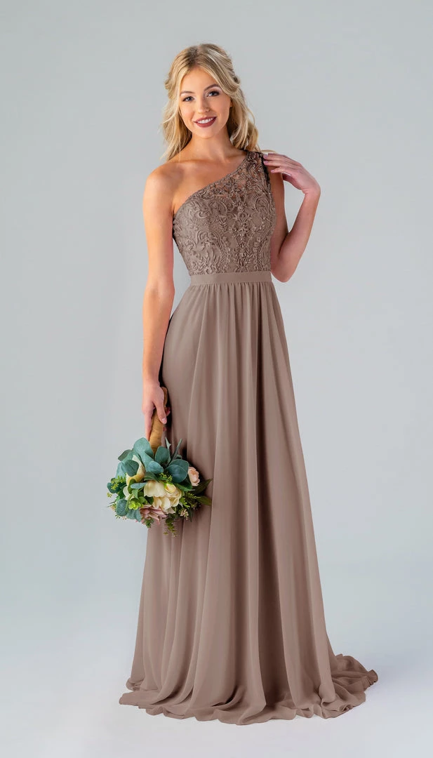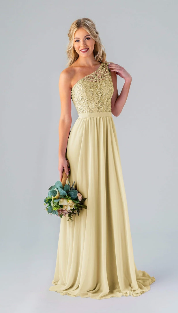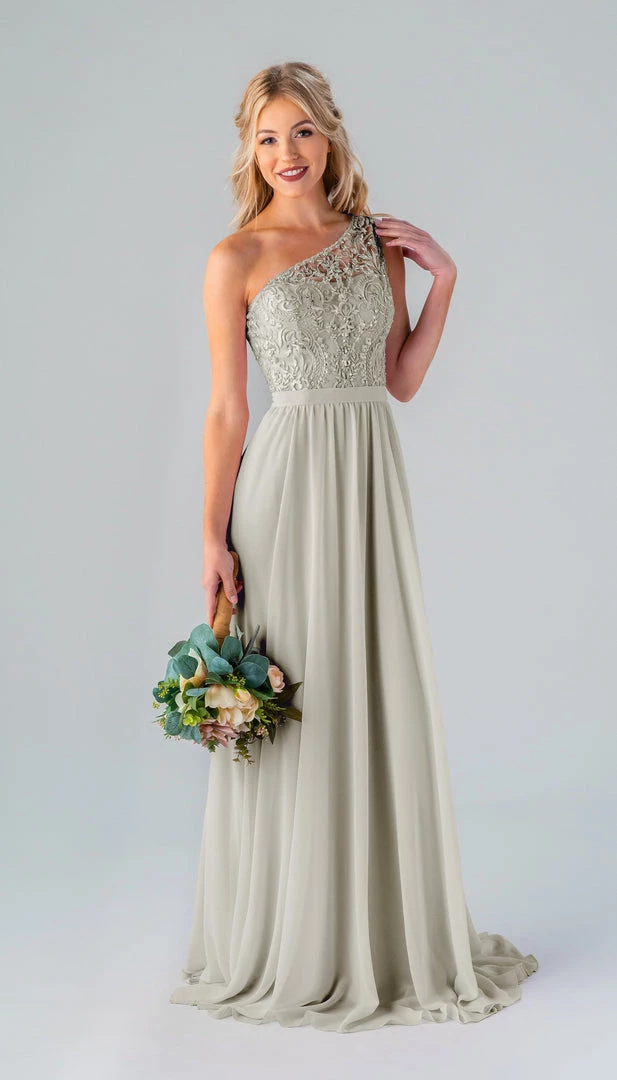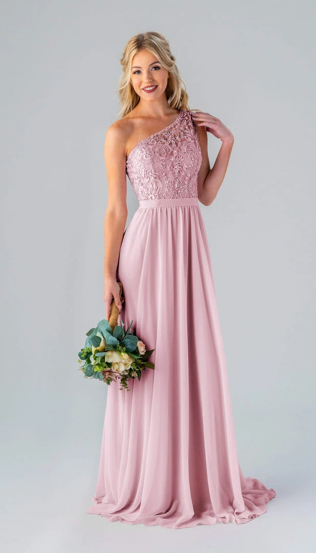 Shannon is a show-stopping one-shoulder bridesmaid dress that will make you feel effortlessly beautiful. The beaded embroidered lace adds a romantic touch, while the a-line skirt lets you move freely. Featuring pockets, this gorgeous chiffon dress also has added boning for extra structure around the bust! Feel comfortable and confident in your bridesmaid duties as you wear Shannon.