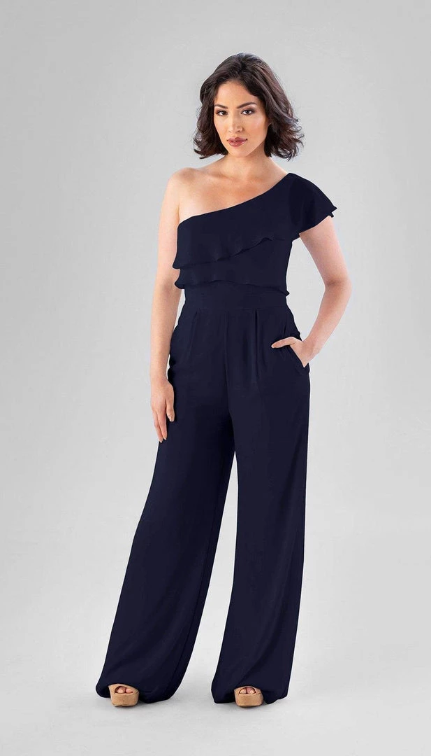 This jumpsuit is a part of our At Home Try-On collection of sample dresses! To try the Aurora bridesmaid jumpsuit on at home, you can choose from the sizes and colors available to help decide on the perfect style and size for you.