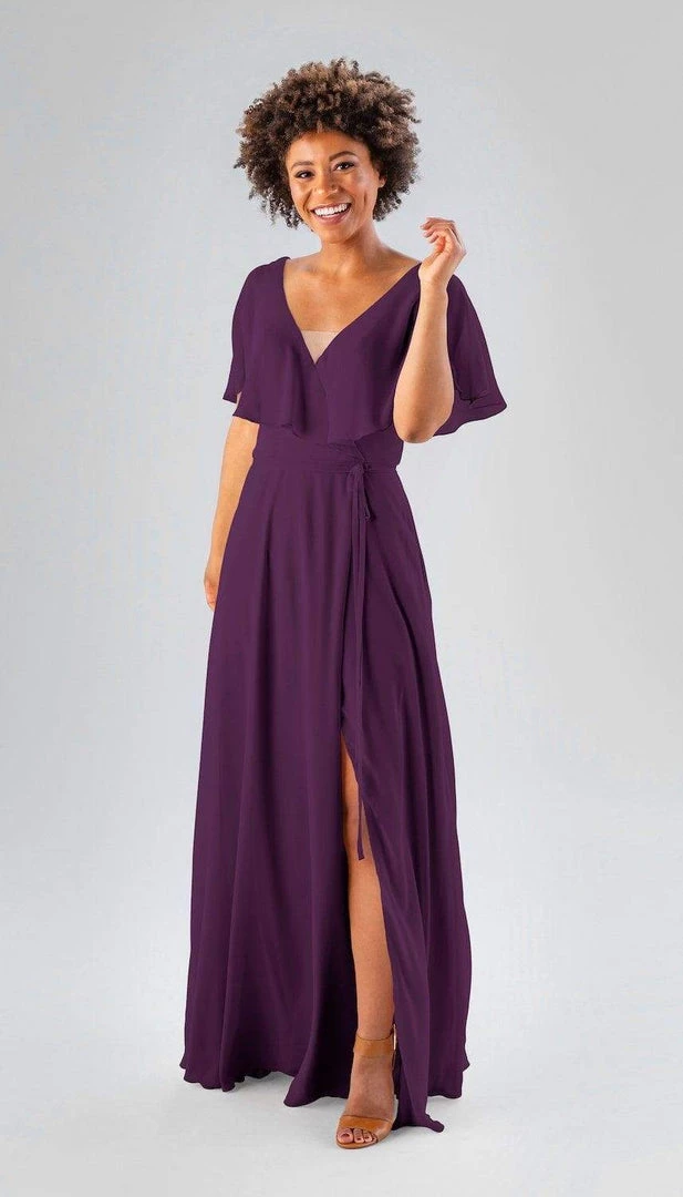 This chiffon bridesmaid dress is a part of our At Home Try-On collection of sample dresses! To try the Courtney bridesmaid dress on at home, you can choose from the sizes and colors available to help decide on the perfect style and size for you.