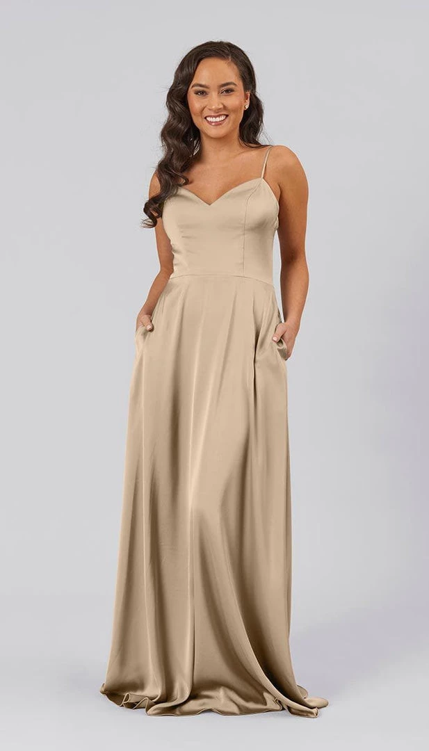 Dawson is our modern take on the classic bridesmaids dress. It is made from an affordable and high quality satin. This dress is simple, casual, and flattering on many body types. It features a v-neckline, clean bodice, pockets, and a-line skirt. This lovely dress has adjustable straps for the perfect fit!