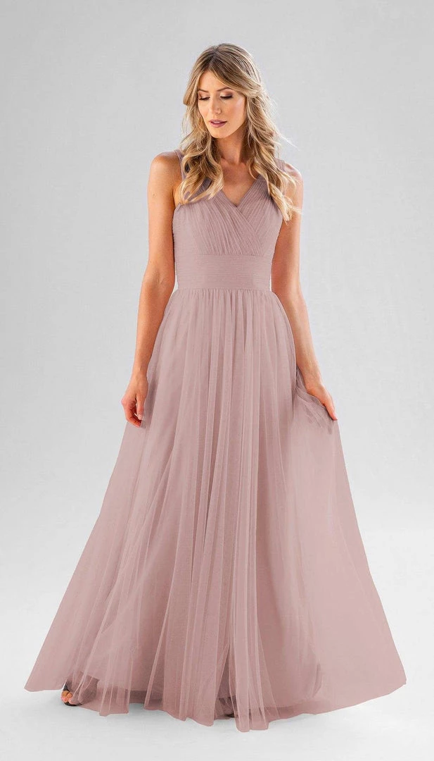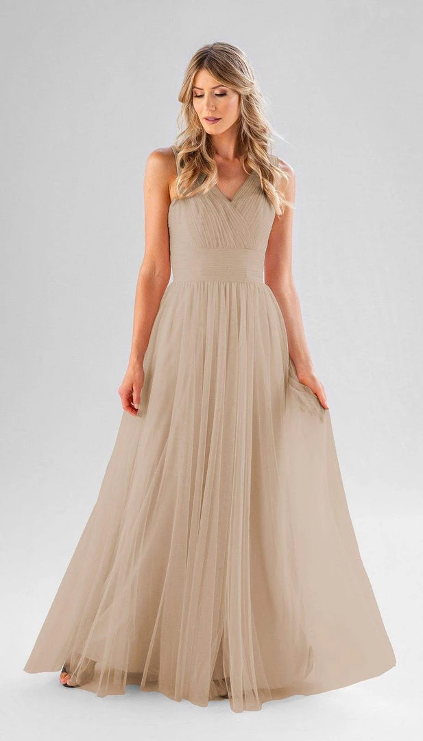 This tulle bridesmaid dress is a part of our At Home Try-On collection of sample dresses! To try the Joelle bridesmaid dress on at home, you can choose from the sizes and colors available to help decide on the perfect style and size for you.