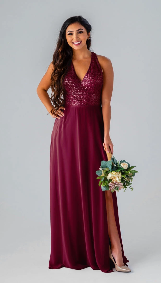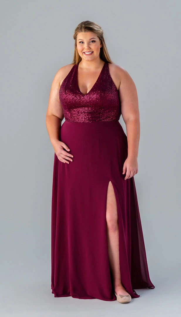 This dress is a part of our At Home Try-On collection of sample dresses! To try the sequin and chiffon Maya bridesmaid dress on at home, you can choose from the sizes and colors available to help decide on the perfect style and size for you.