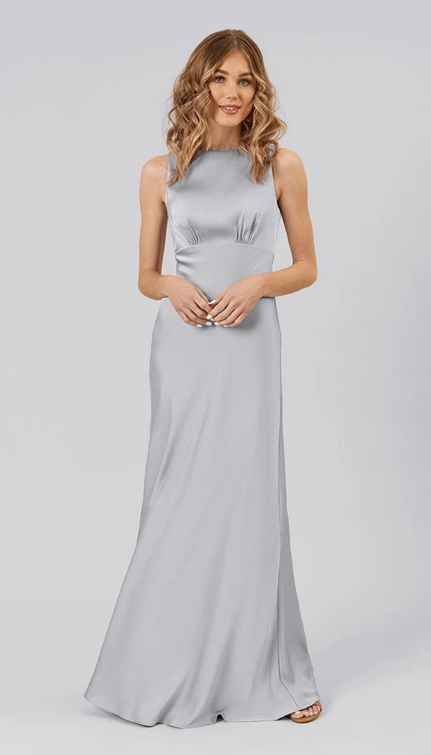 The Monica Bridesmaids dress is made of high quality satin fabric that is not overly shiny! It features a high neck halter with a keyhole back. This has a classic look and is modest, vintage, and elegant. It is available in a wide range of colors that makes mixing and matching easy for your bridal party.