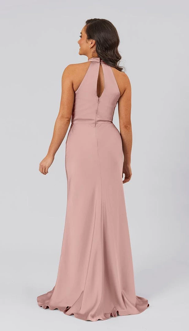 Kennedy Blue Rory is made from an affordable high quality satin. Kennedy Blues’ new stain is lightweight and not overly shiny making it more luxurious. This dress is sleek, modest, and elegant. Rory is the perfect fitted dress for a more elegant and classic look.