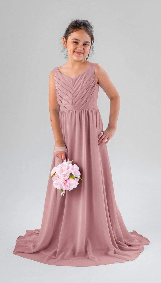 This dress is a part of our At Home Try-On collection of sample dresses! To try the Saylor junior bridesmaid dress on at home, you can choose from the sizes and colors available to help decide on the perfect style and size for you.