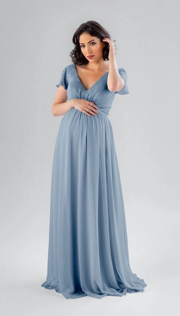 This dress is a part of our At Home Try-On collection of sample dresses! To try the Kayli maternity bridesmaid dress on at home, you can choose from the sizes and colors available to help decide on the perfect style and size for you.