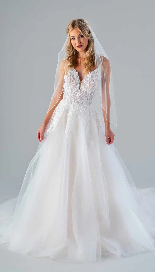 This dress is a part of our At Home Try-On collection of sample dresses! To try the Carter wedding dress on at home, you can choose from the sizes and colors available to help decide on the perfect style and size for you.
