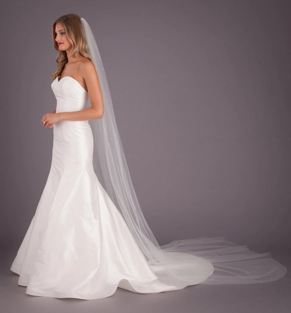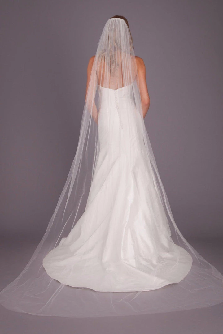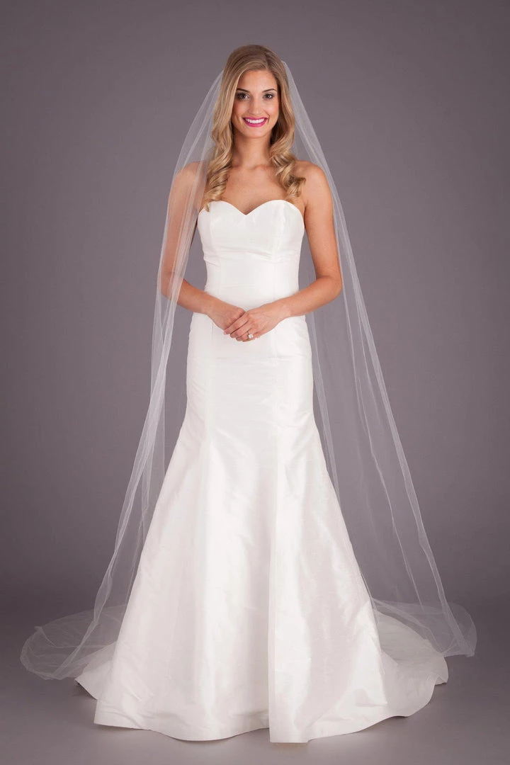 Another simple stunner, Kennedy Blue Lily is a long cathedral veil with charm and elegance that will complement your bridal gown perfectly.